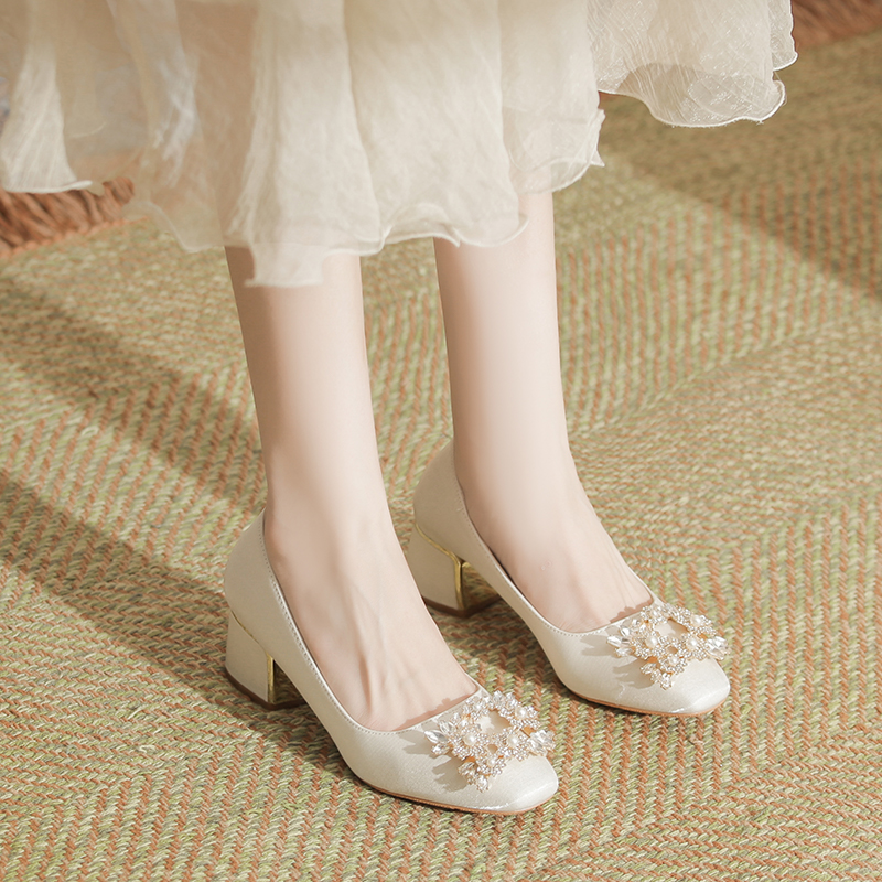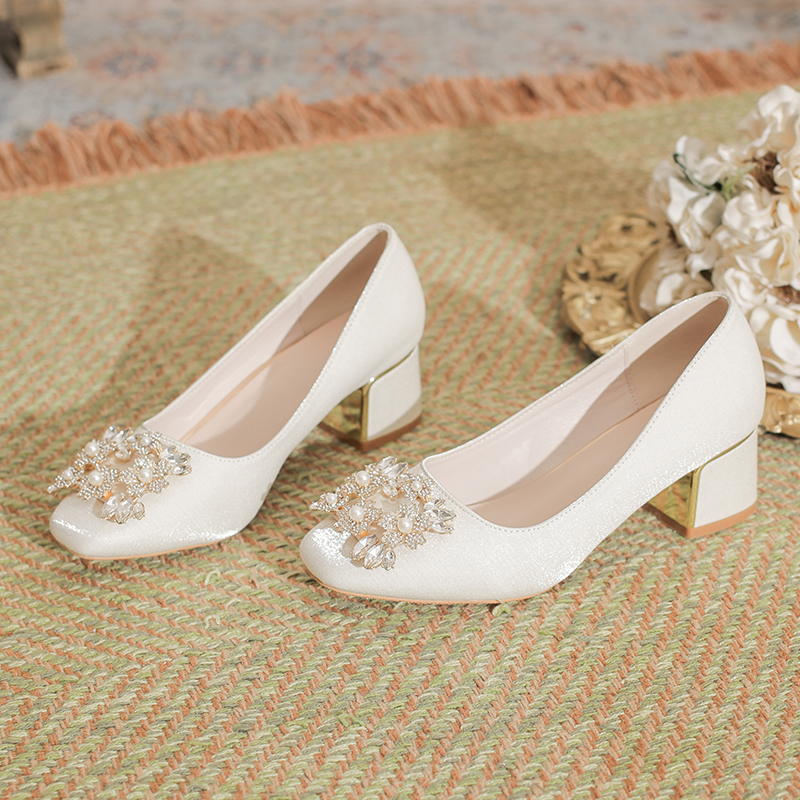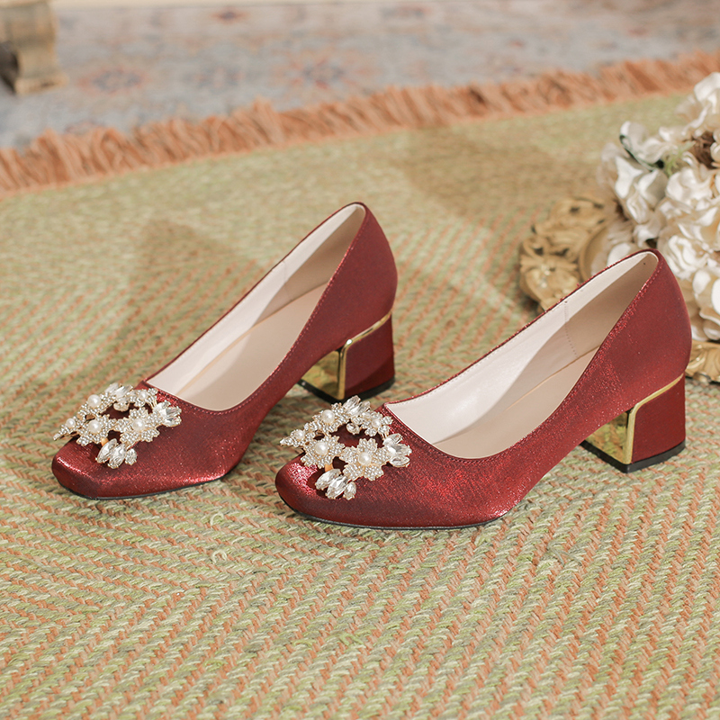 2025新款旗袍婚鞋中老年粗跟妈妈高端红色高跟鞋婚礼喜婆婆婚宴鞋