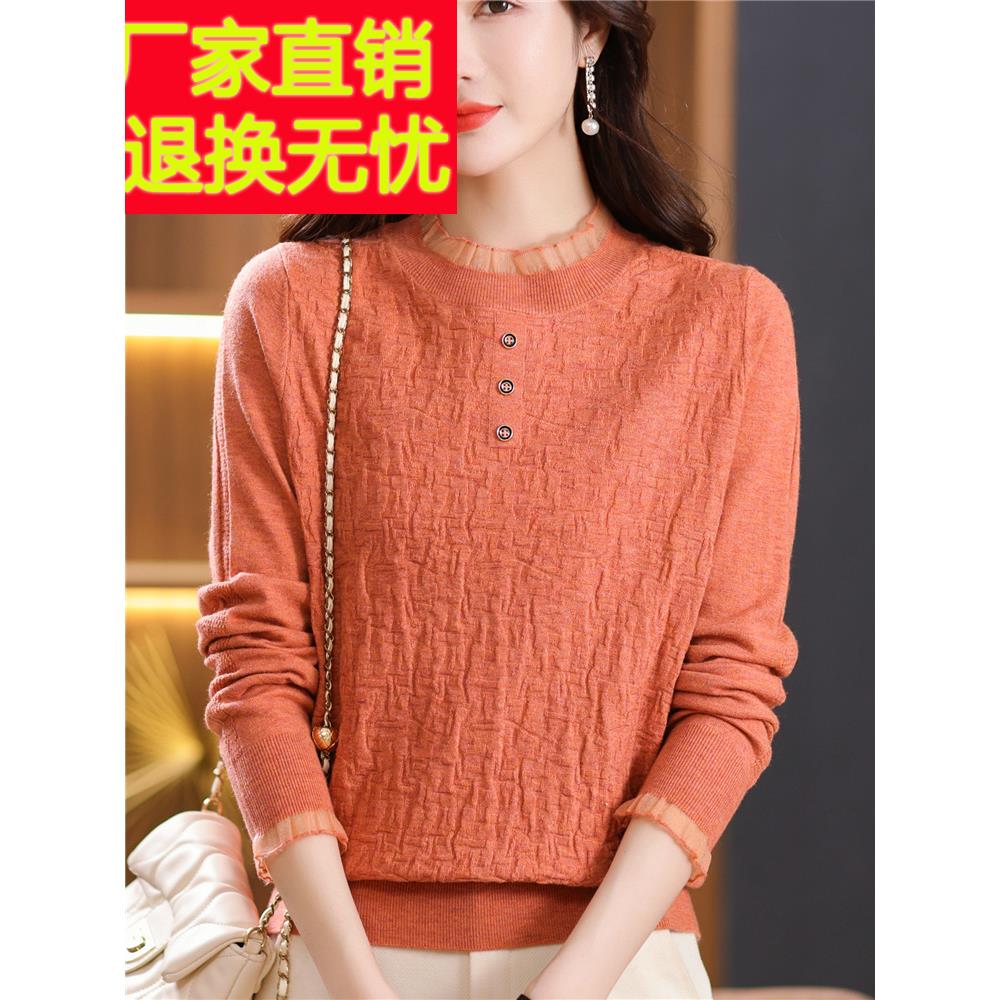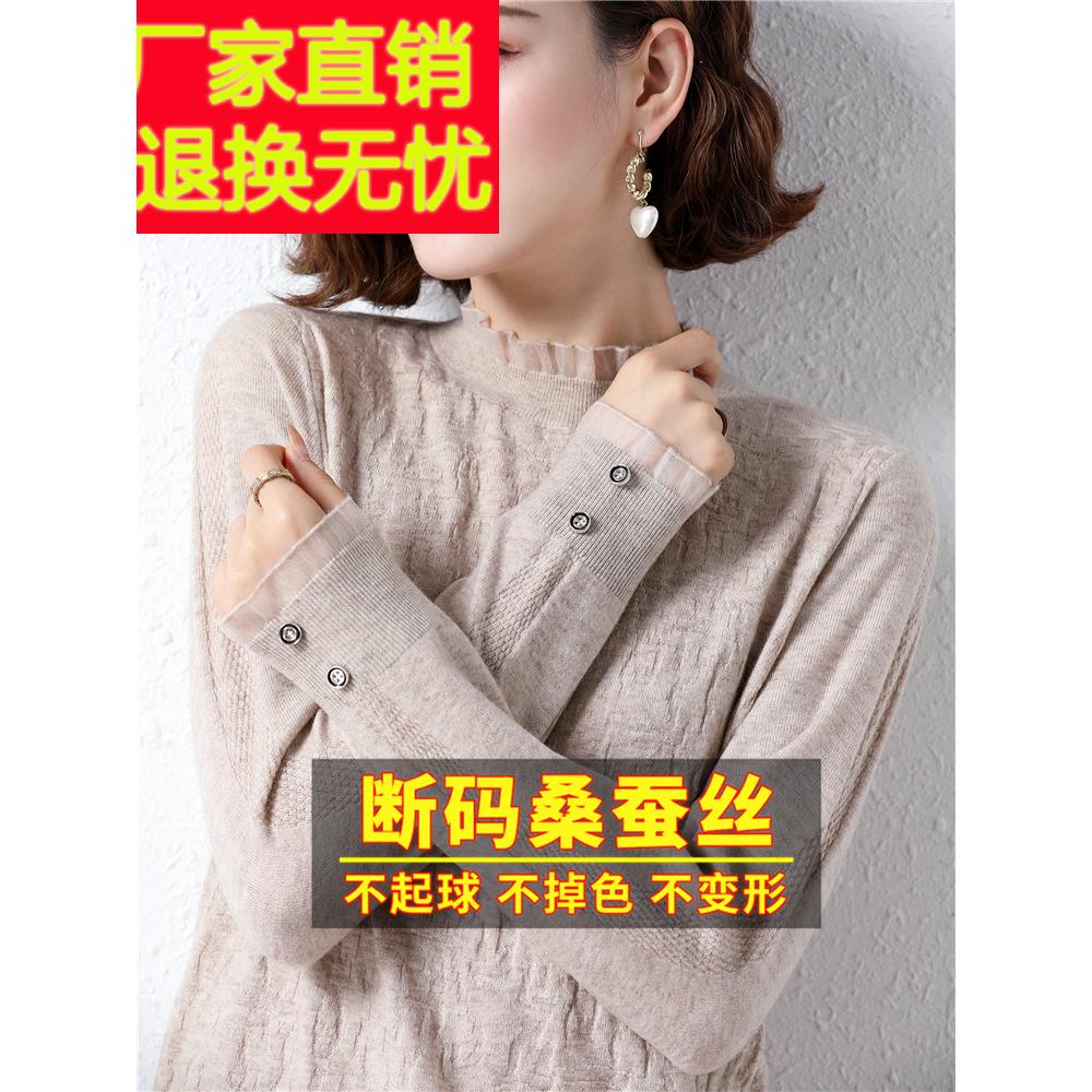 春秋桑蚕丝长袖t恤网纱粉色针织打底减龄漂亮内搭洋气小衫女上衣
