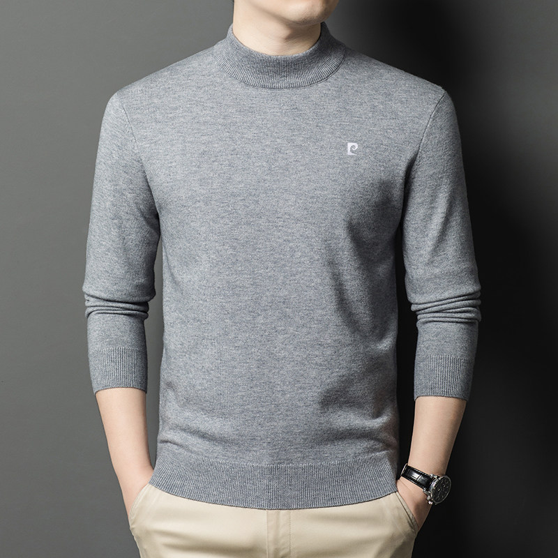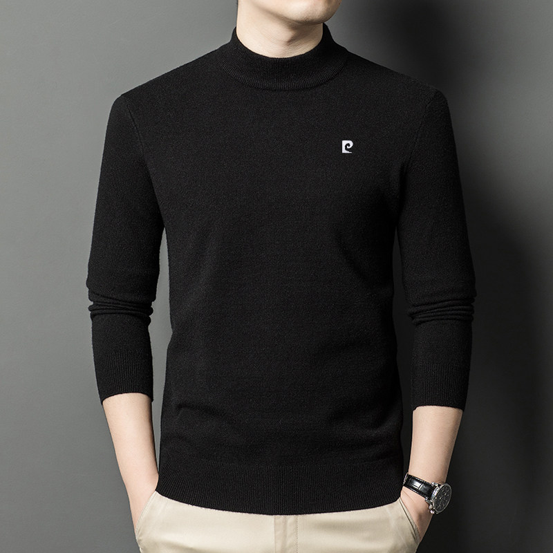 皮尔卡丹冬季加绒加厚纯羊毛衫男士中年爸爸半高领毛衣保暖打底衫