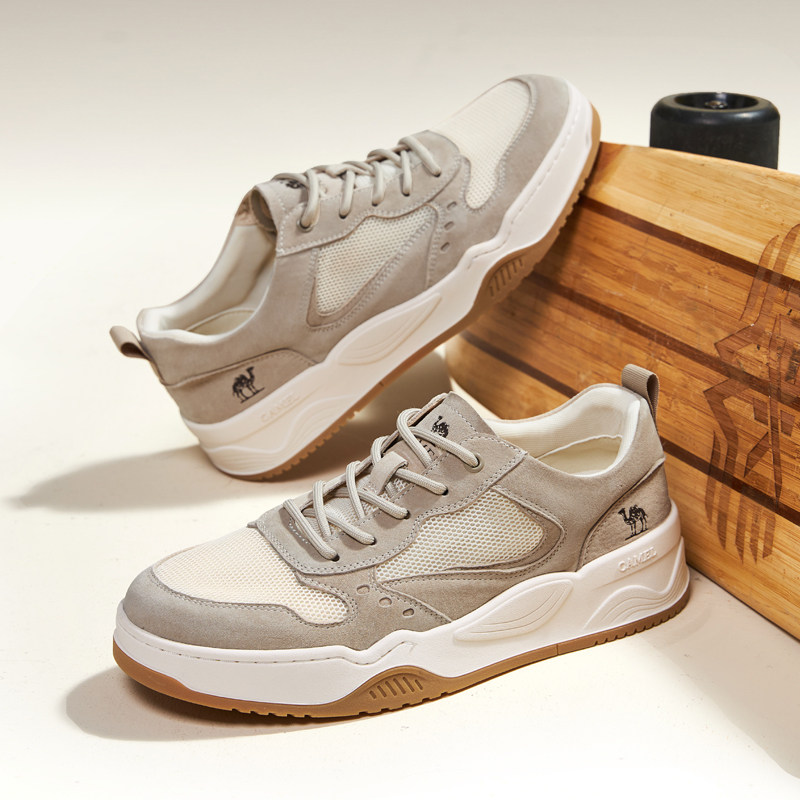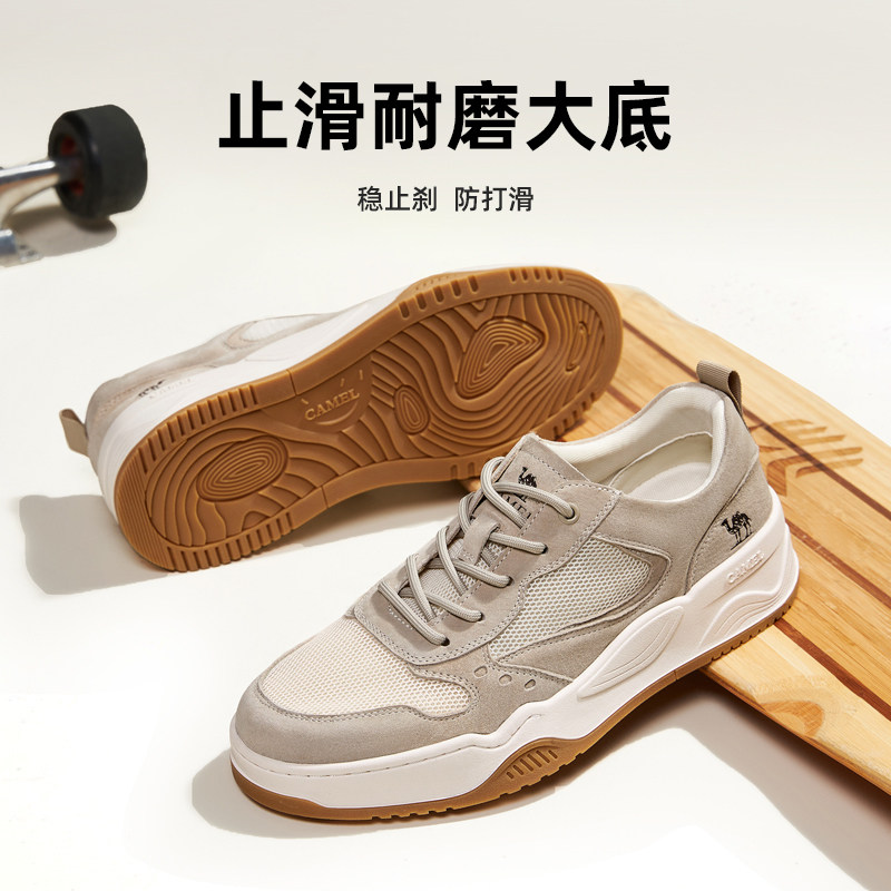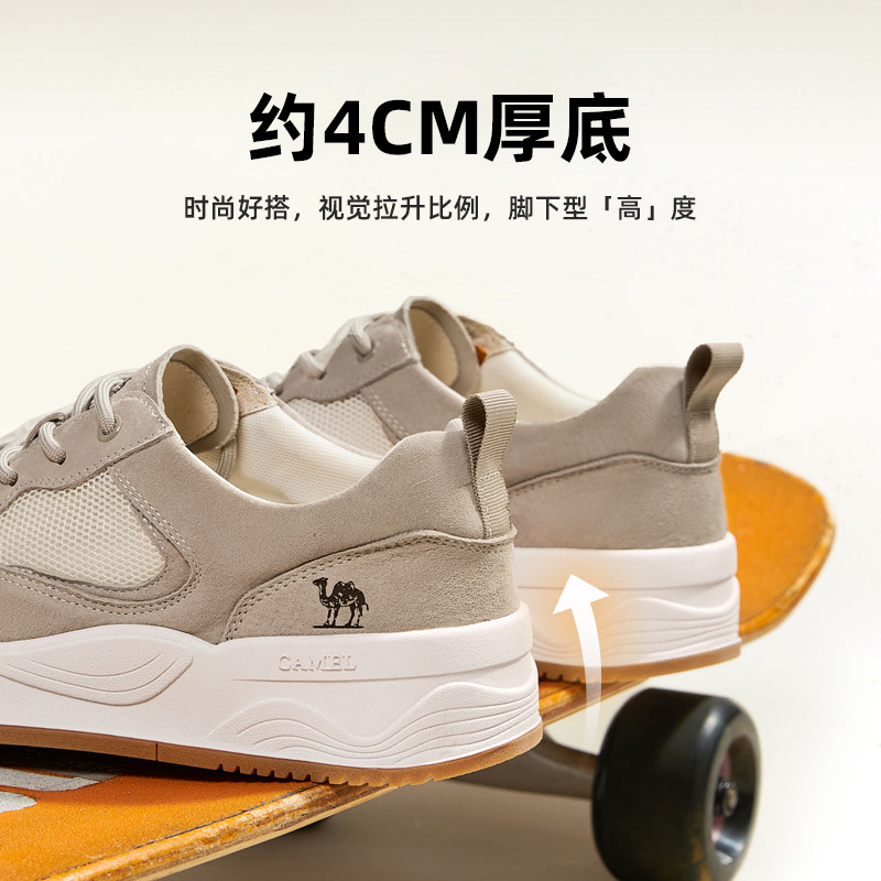 骆驼男鞋2024年春季新款透气网面运动鞋工装厚底百搭休闲男士板鞋