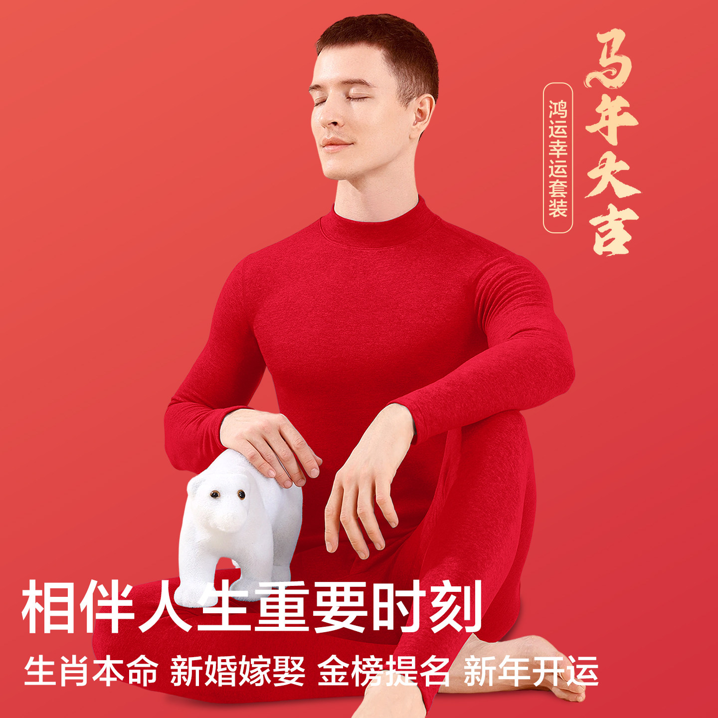南极人本命年保暖内衣男士红色2026新款属马结婚礼物秋衣秋裤套装