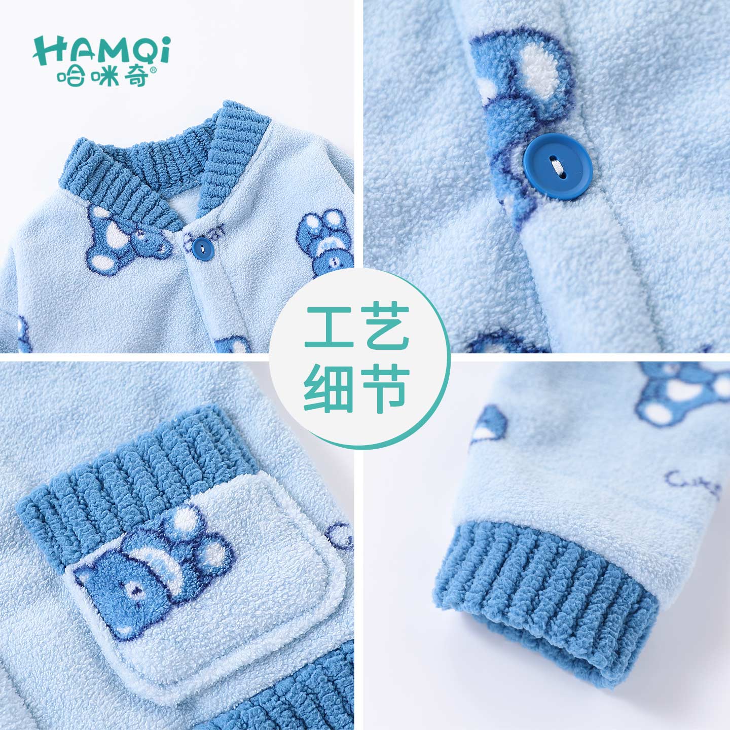 男童法兰绒家居服套装秋冬装宝宝开衫卡通睡衣小儿童新款外穿衣服
