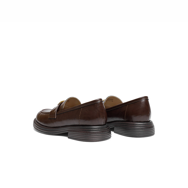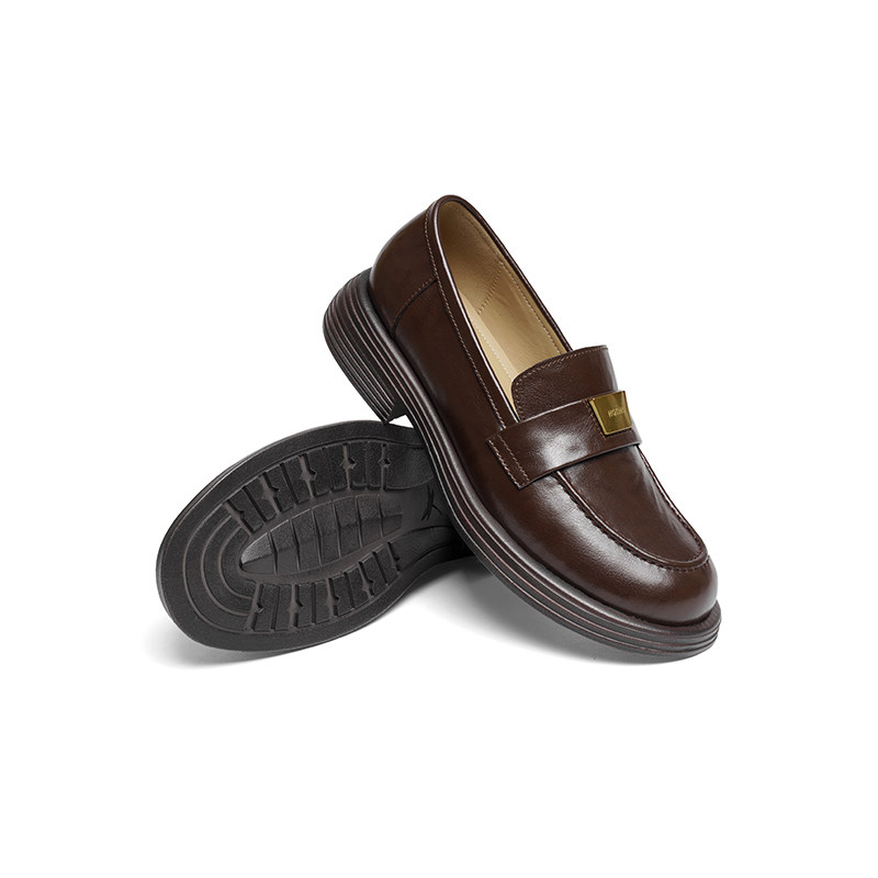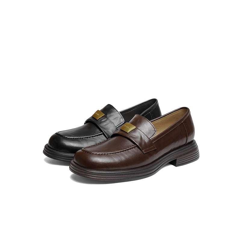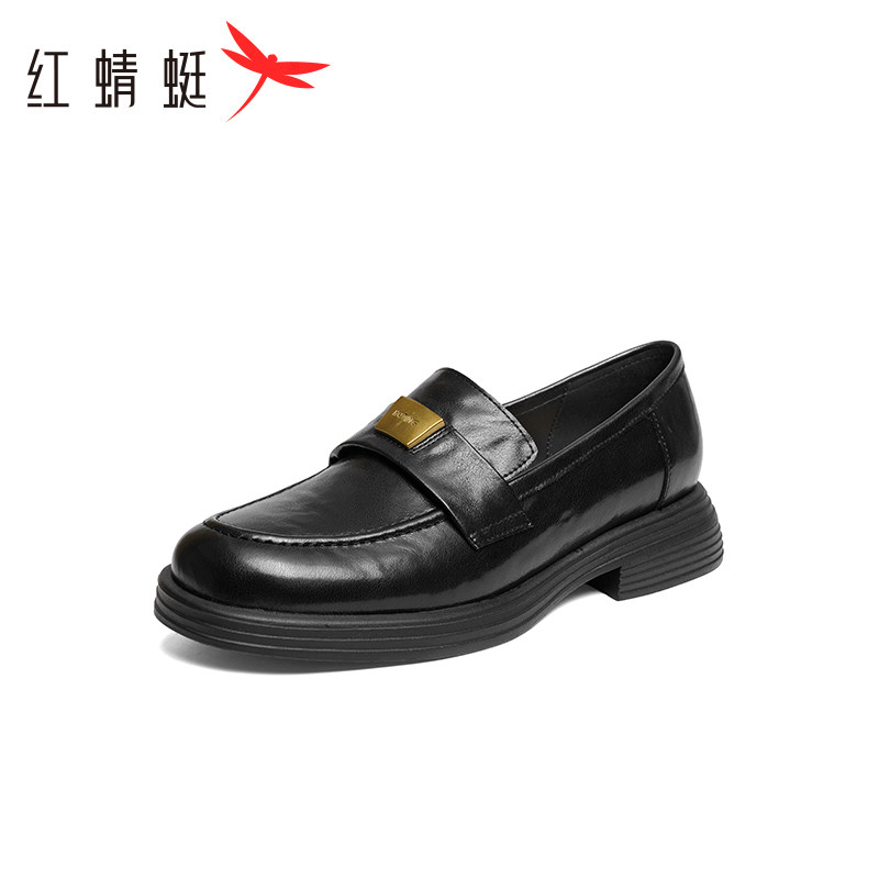 红蜻蜓乐福鞋女新款一脚蹬女鞋棕色复古黑色英伦风小皮鞋女款单鞋