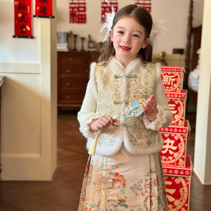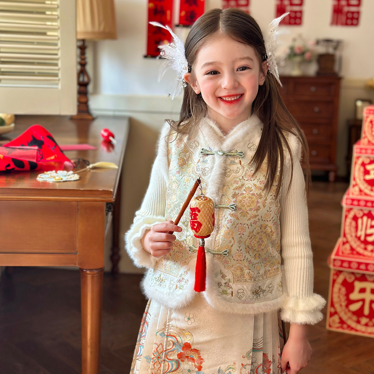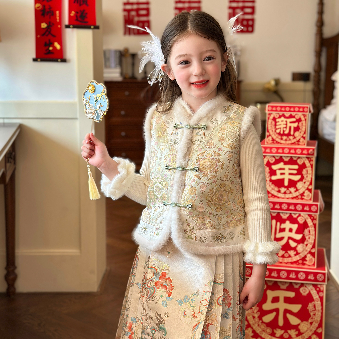 栀了成长记童装女童新中式国风唐装上衣2025冬季儿童新年夹棉马甲