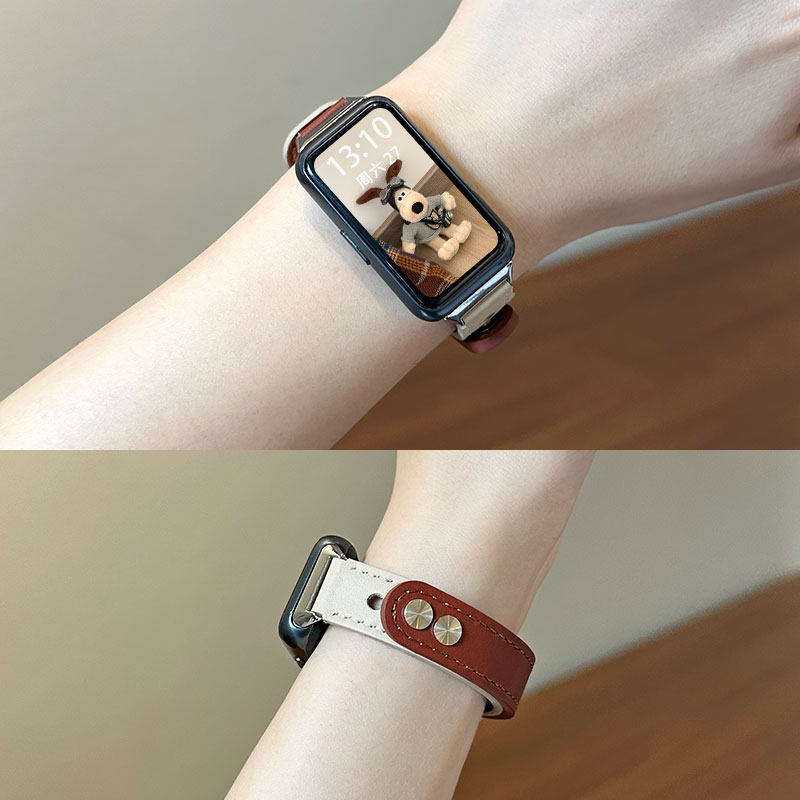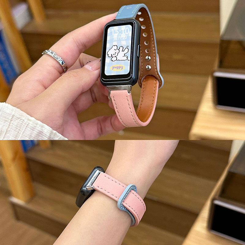适用华为手环10表带8/9NFC双拼双扣款荣耀10智能运动band7/6pro腕带秋冬拼色皮质个性潮时尚男女可替换配件
