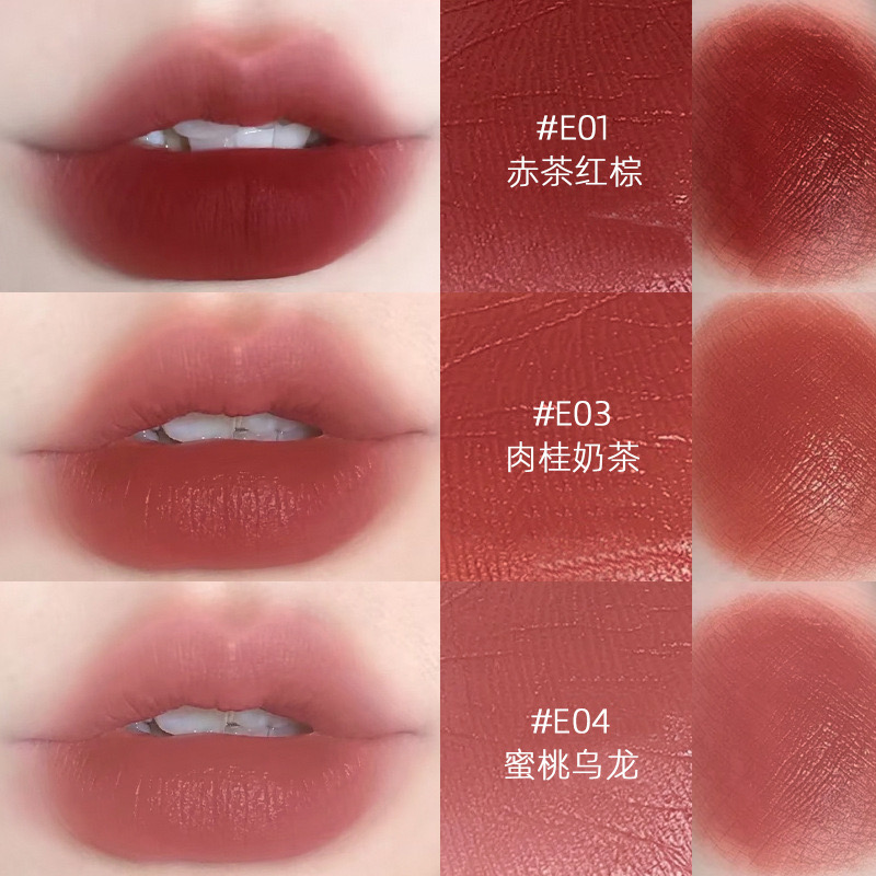 肉桂奶茶色豆沙裸色系素颜口红唇釉哑光雾面不掉色不沾杯显白唇膏