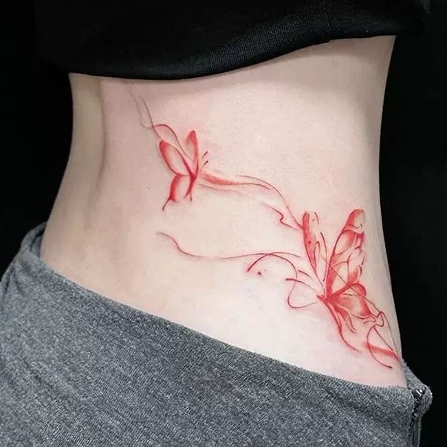 性感辣妹腰部手臂锁骨红色蝴蝶彩色纹身贴女防水持久