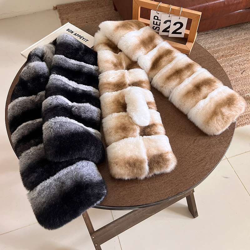 双面冬季獭兔毛保暖围巾轻奢围脖