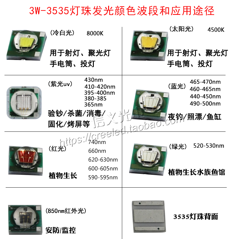 3535 LED灯珠 3W红绿青蓝紫UV395 450 490 660 850nm鱼缸植物生长
