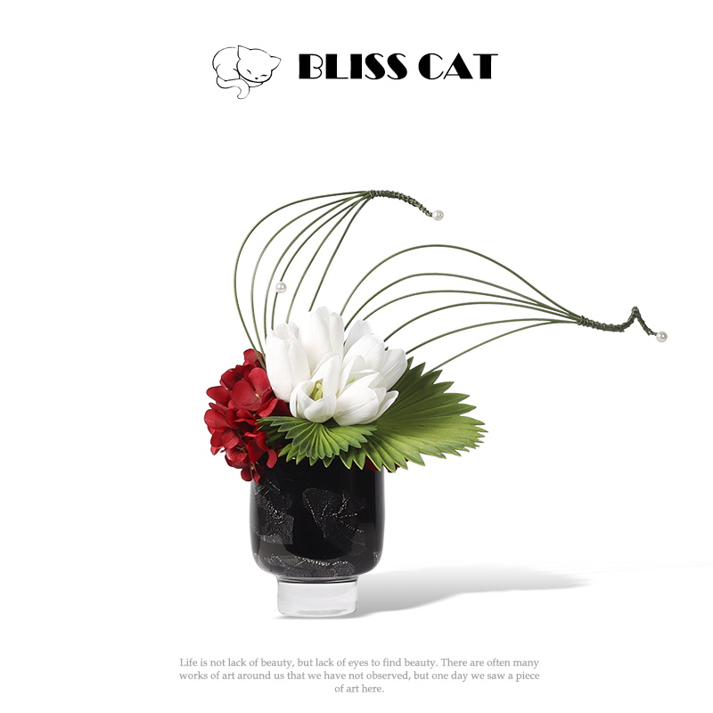 中古风黑色银箔高脚玻璃小花瓶插花售楼处洽谈桌茶几花器桌花摆件