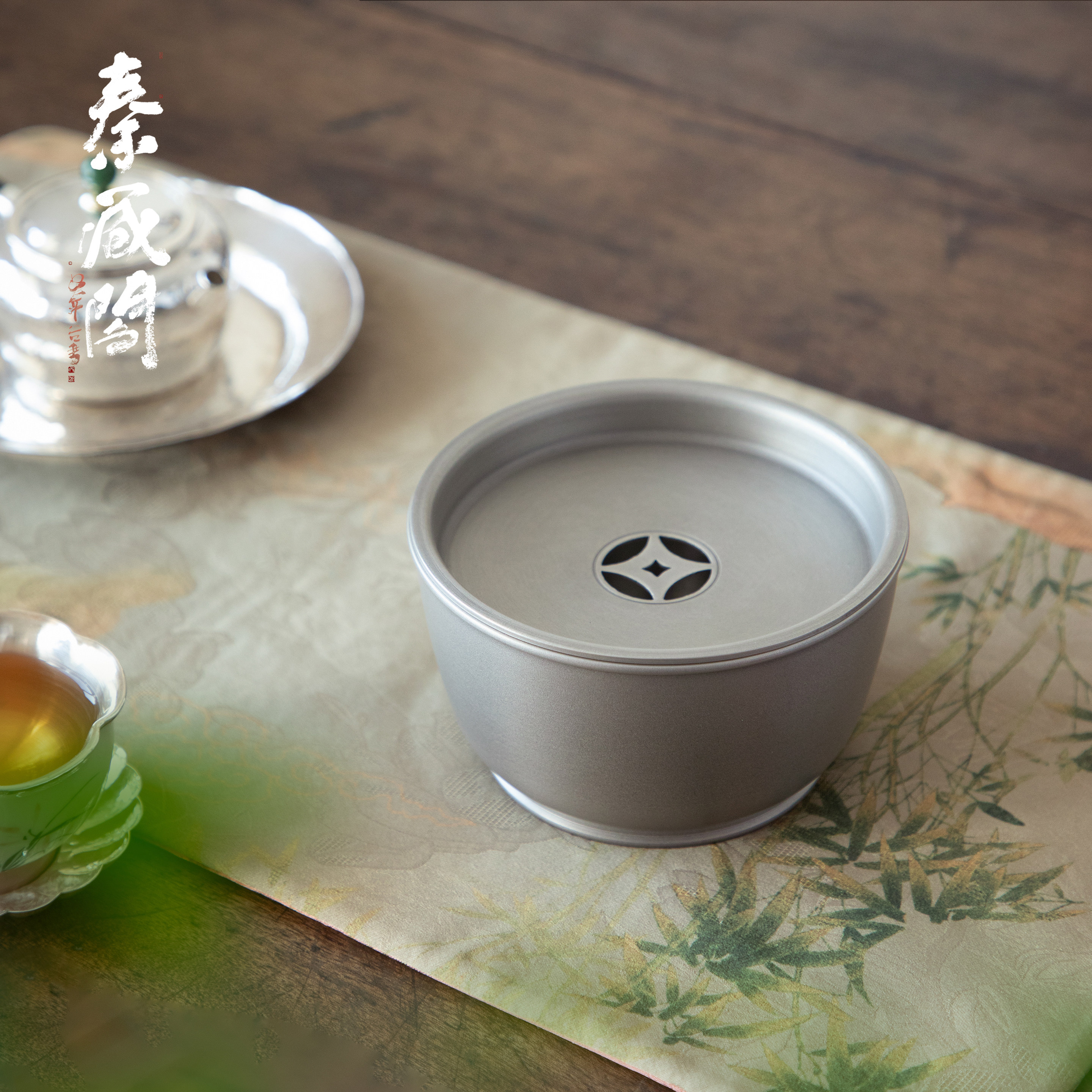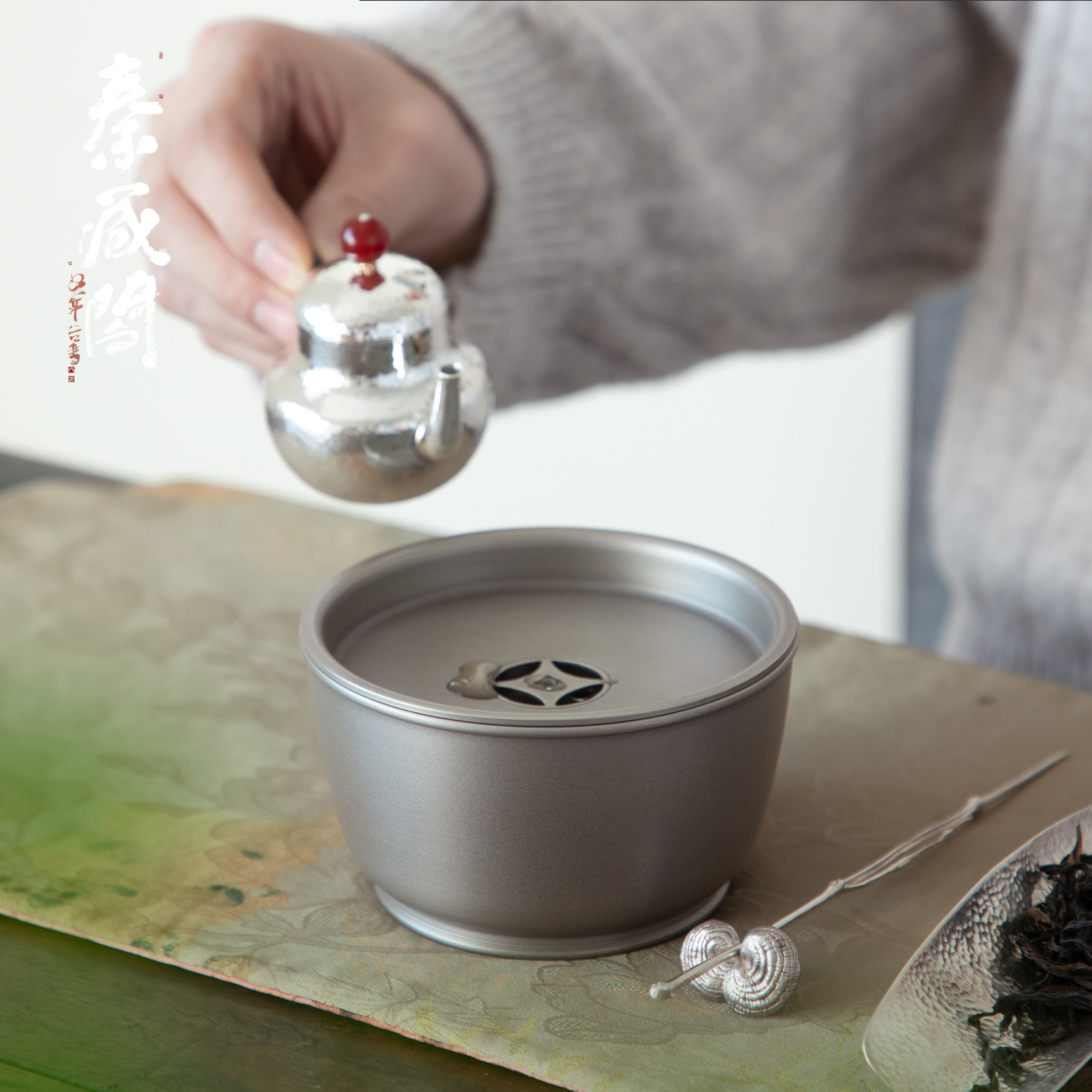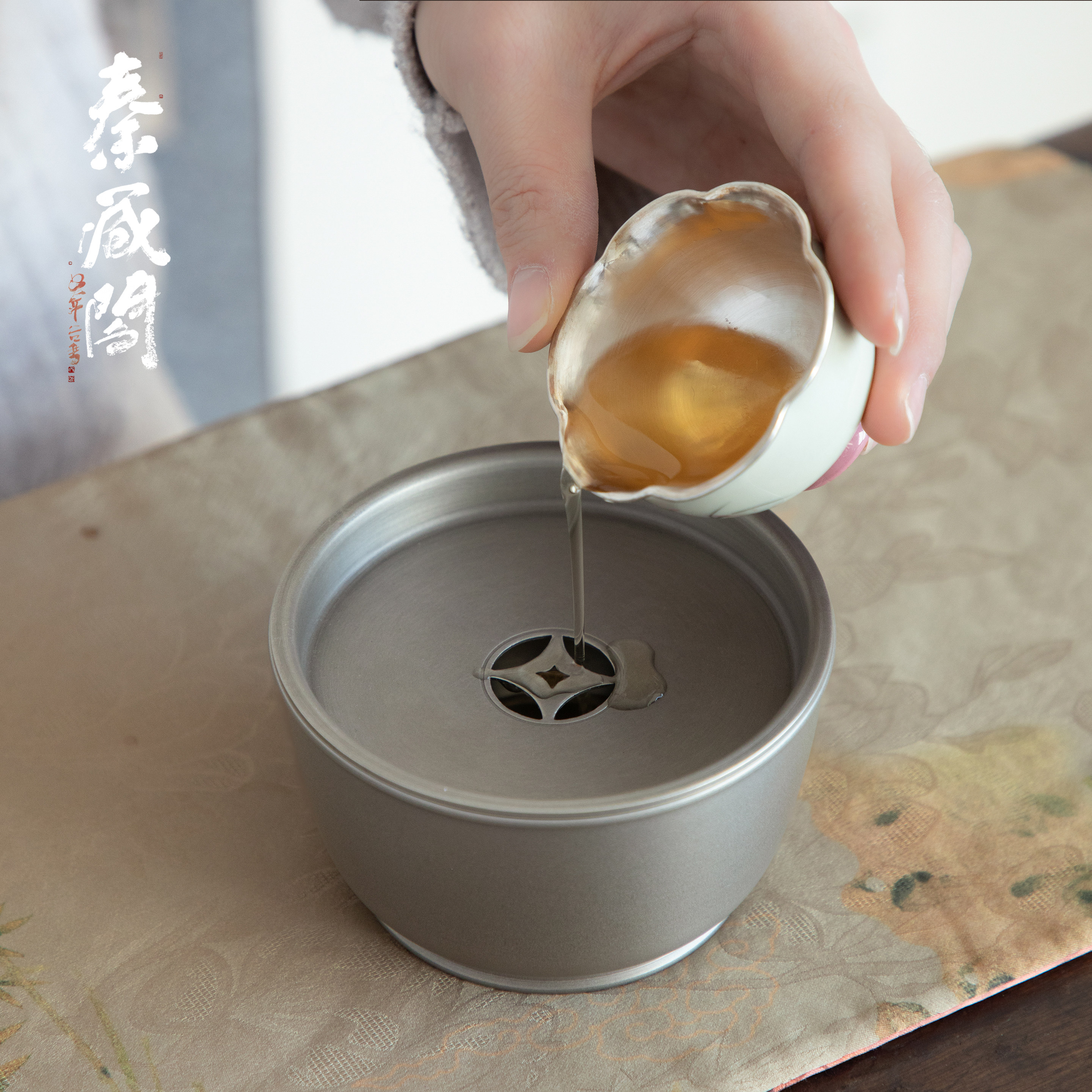 秦藏阁 钱孔纯锡建水手工茶海壶承干泡台储水式茶室配件简约300ml