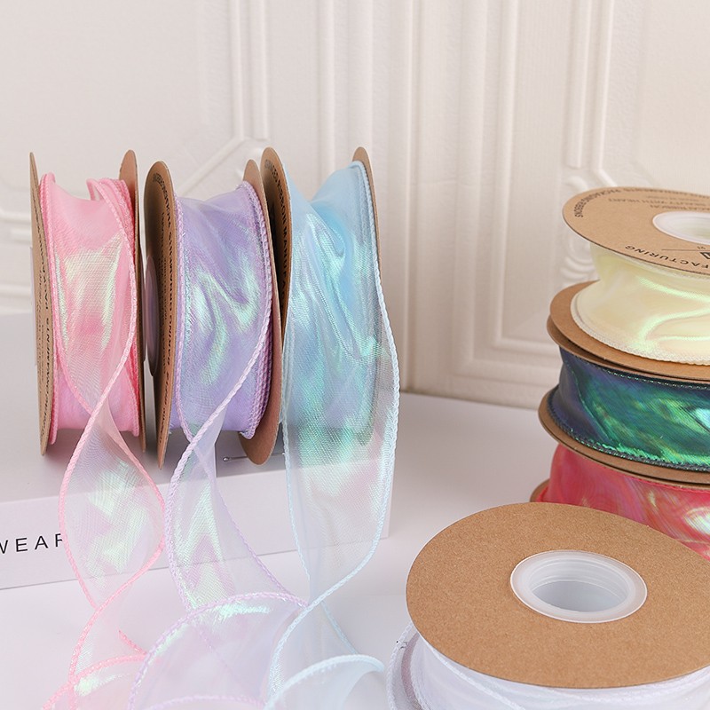 新款幻彩鱼尾纱丝带鲜花包装花束蝴蝶结材料鱼尾纱波浪纱花艺绑带