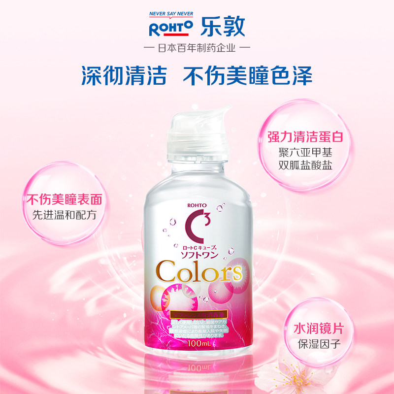 日本ROHTO乐敦C3美瞳隐形眼镜镜片清洁去蛋白专用护理液100ml清洗