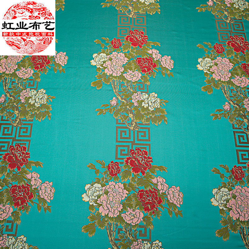 现代中式布料沙发坐垫高红木家具牡丹抱枕坐垫桌旗提花面料