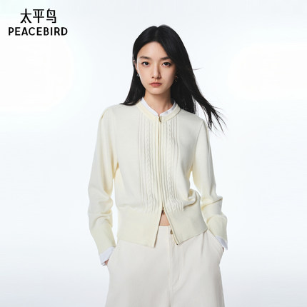 【商场同款】太平鸟25秋新双拉链领口拼接绞花针织开衫A1EDF3504