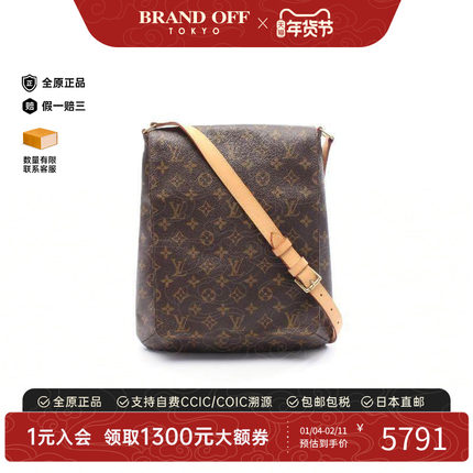 中古LV路易威登女包B级9新musette王菲包涂层/防水帆布斜挎包棕色