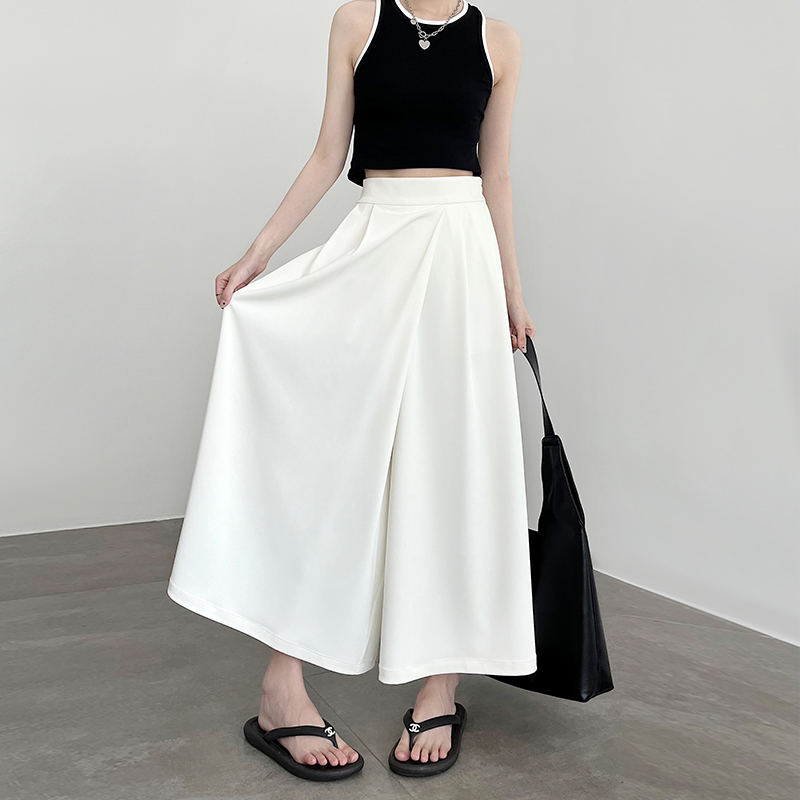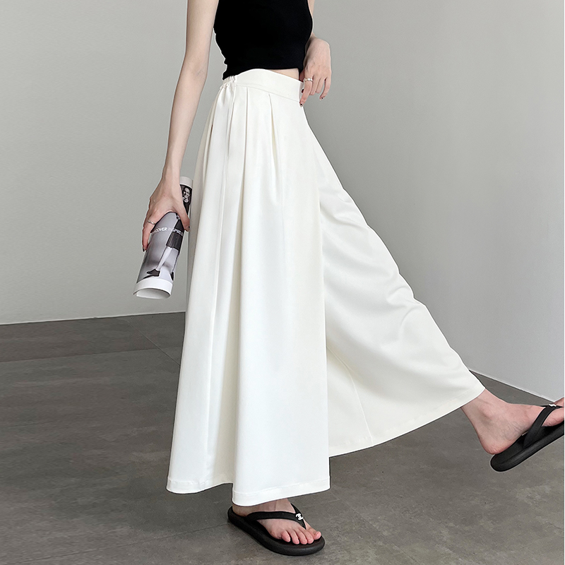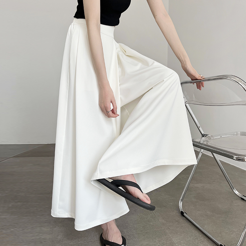 白色九分阔腿裤女夏2024新款高腰垂感二合一气质大摆西装冰丝裙裤
