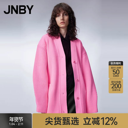 JNBY/江南布衣春秋针织开衫女宽松长袖落肩黑色中长款廓形V领外搭