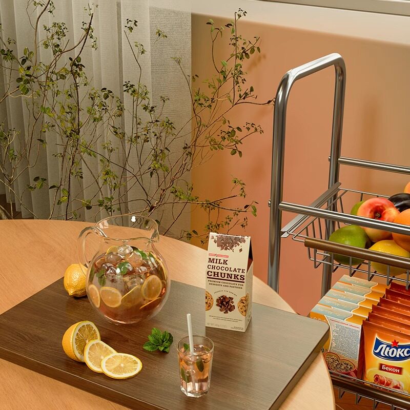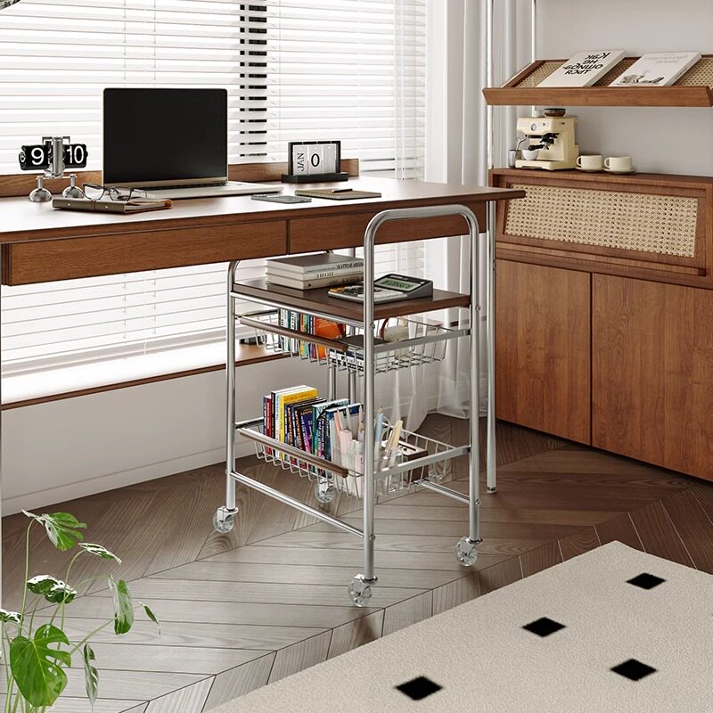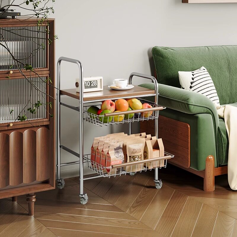 中古风客厅茶几沙发旁零食小推车
