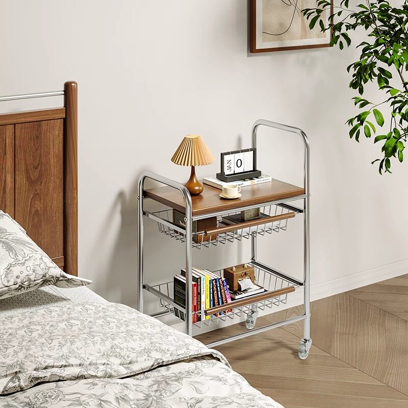 中古风客厅茶几家用沙发旁复古零食小推车移动边几卧室床头柜平替