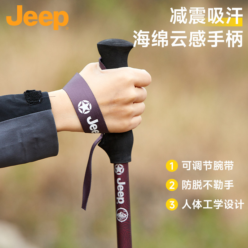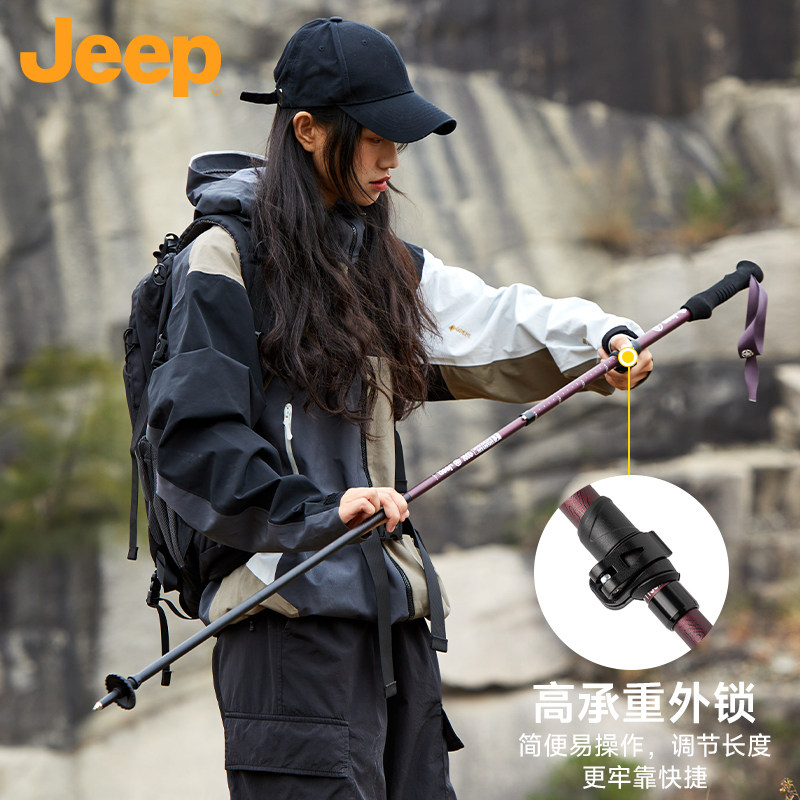 Jeep户外登山杖男士徒步手杖轻量化铝合金折叠专业户外爬山登山棒