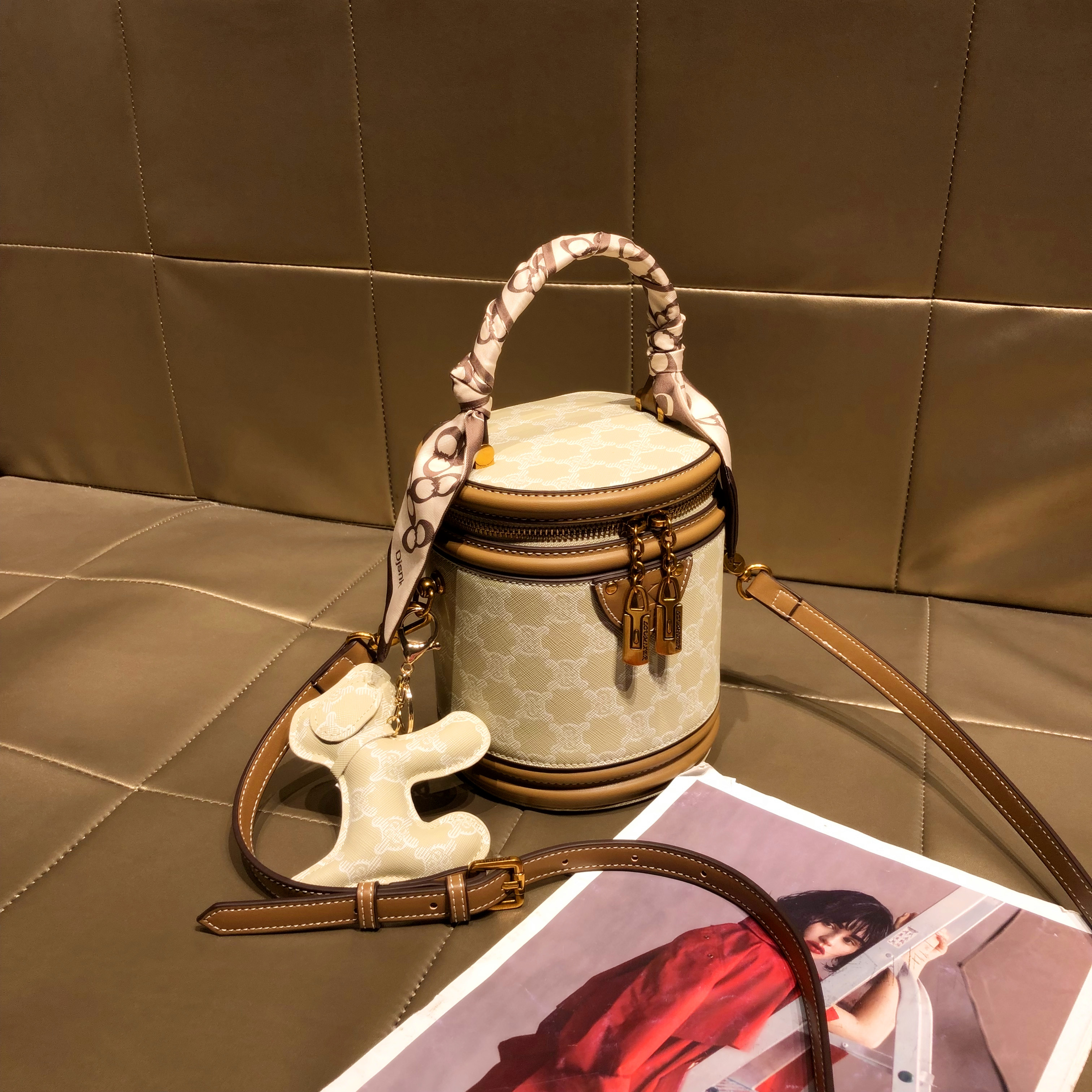 香港品牌包包女式2025新款真皮高级圆筒包时尚手提水桶包气质小包