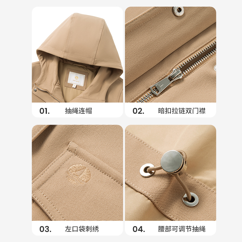 Navigare意大利小帆船小个子风衣女宽松连帽外套中长款通勤女装