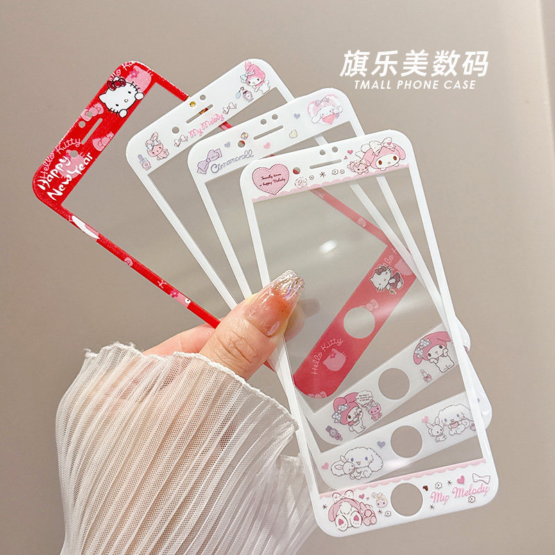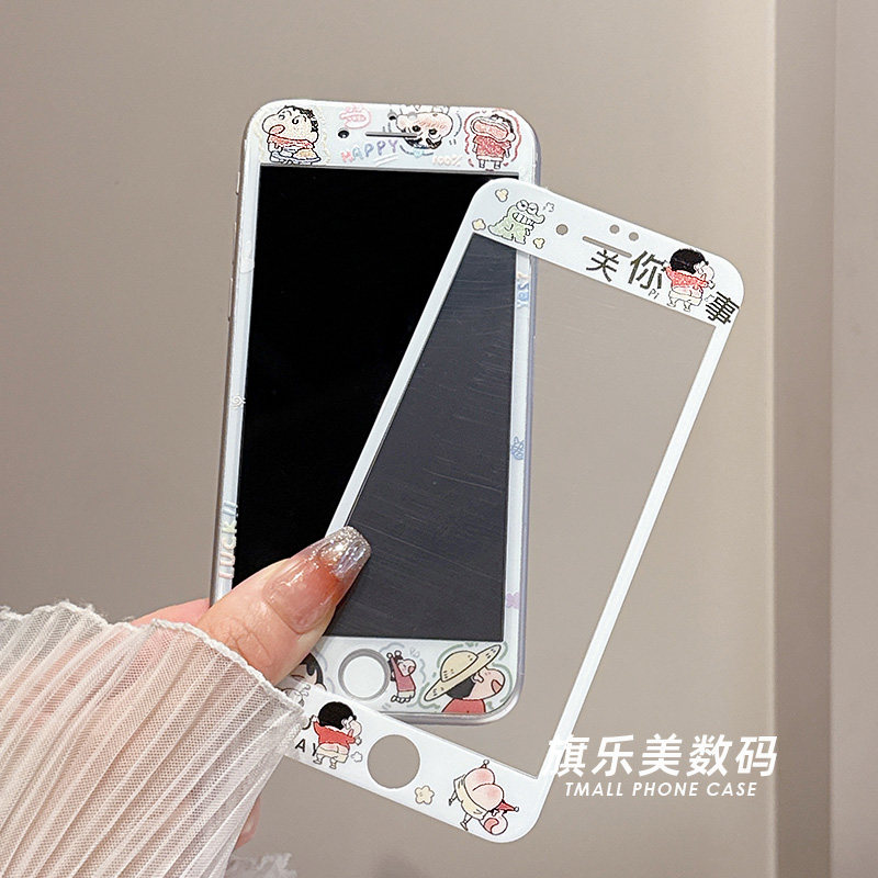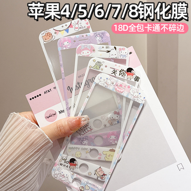 适用苹果7plus/8plus软边钢化膜iPhone6S可爱手机膜5/5S/5C/4/4S卡通全屏膜6Splus不碎边彩膜SE1/2/3代保护膜