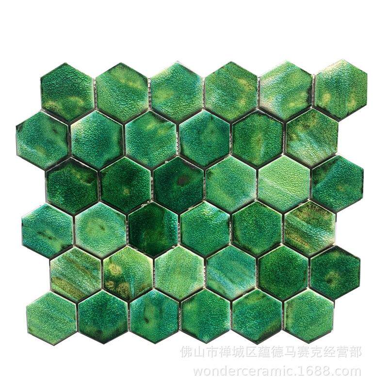 墨绿手工小六角马赛克手绘扇形复古厨房吧台瓷砖卫生间浴室背景墙