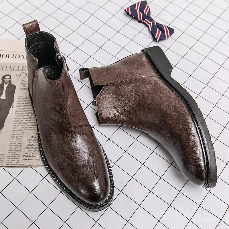 马丁靴男冬季加绒2025新款高帮皮鞋英伦风软皮中帮男士切尔西靴子