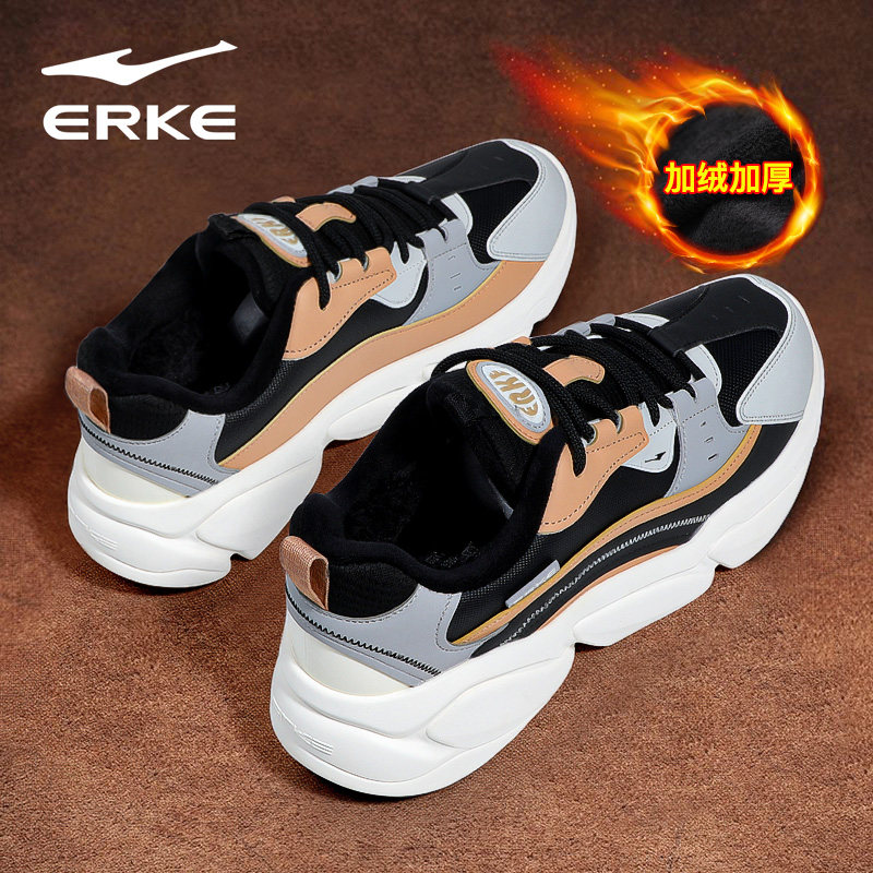 鸿星尔克加绒男鞋2025冬季新款皮面保暖休闲运动鞋男士轻便跑步鞋