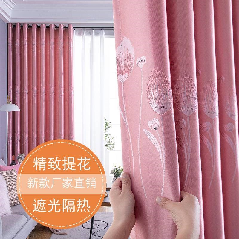 加厚遮光窗帘简约现代隔热卧室客厅阳台飘窗租房成品落地窗送钩子