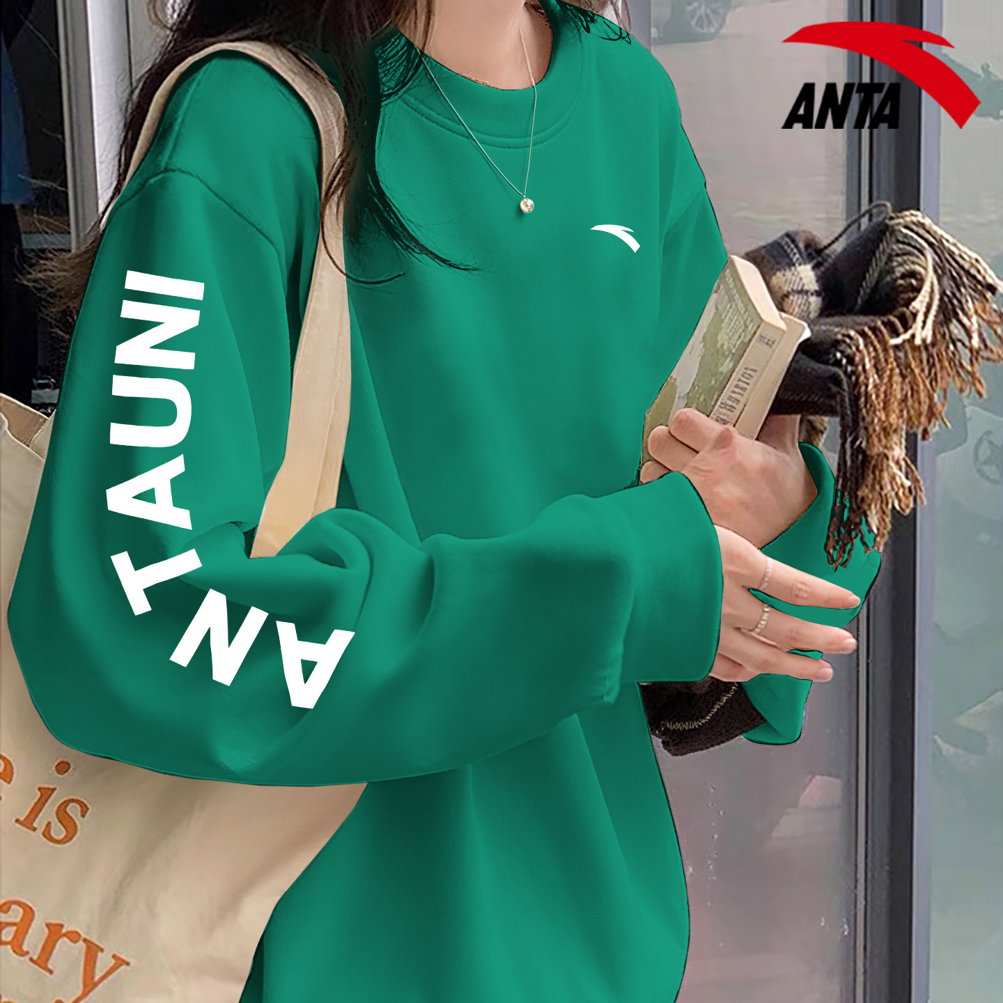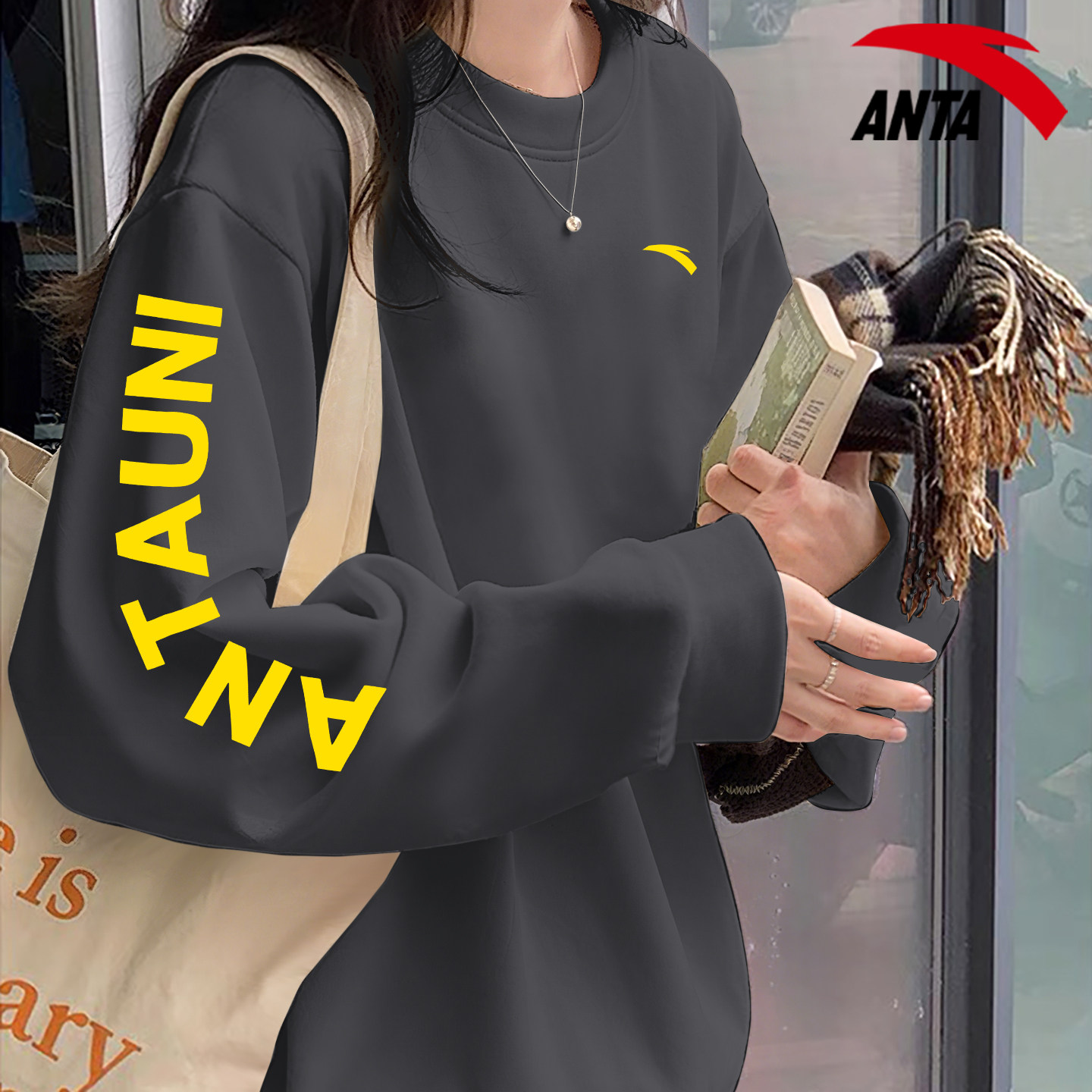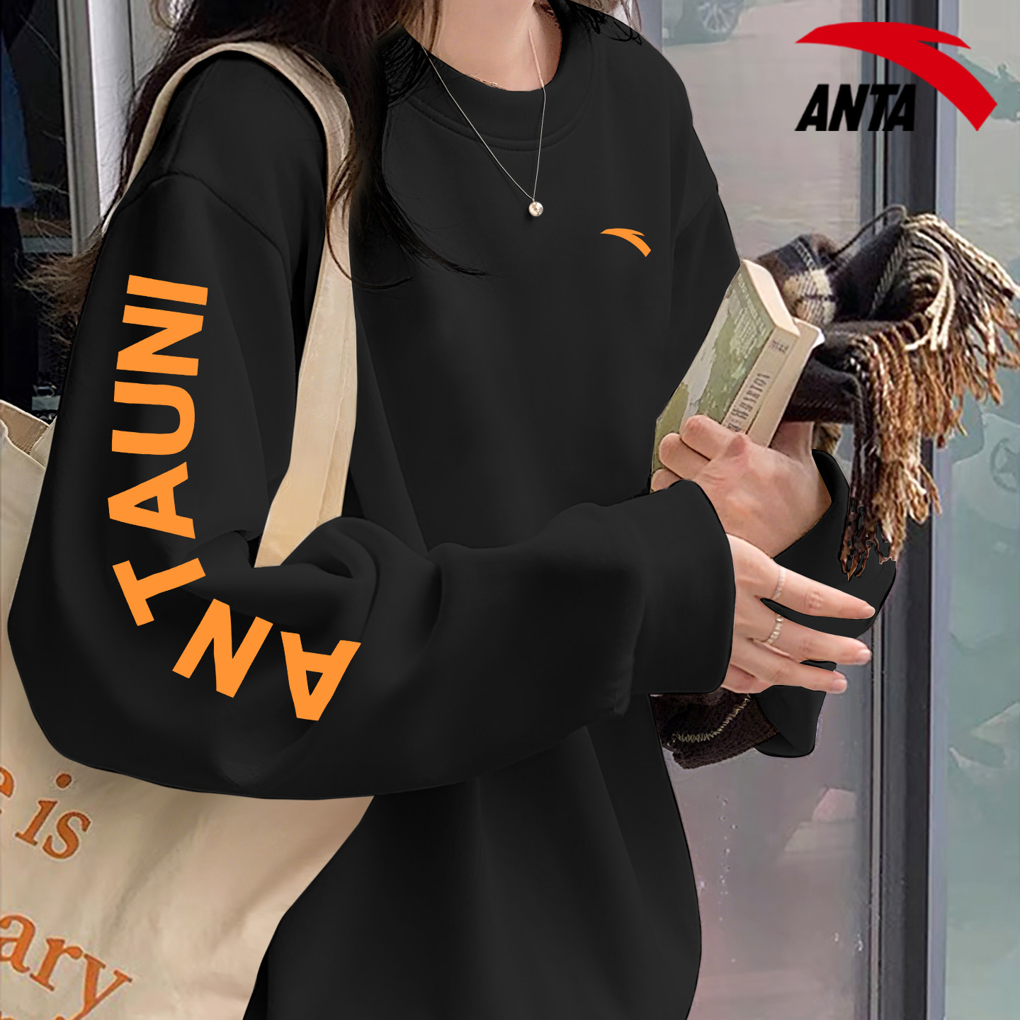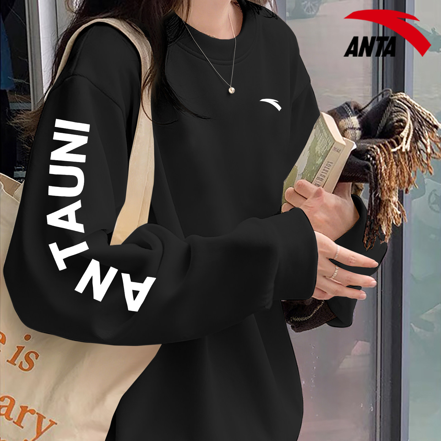 安踏白色卫衣女款简约撞色无帽长袖T恤2025秋冬加绒保暖内搭长袖