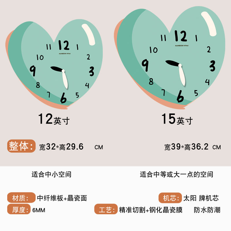 粉色爱心钟表挂钟客厅餐厅2025新款家用现代简约网红创意挂墙时钟