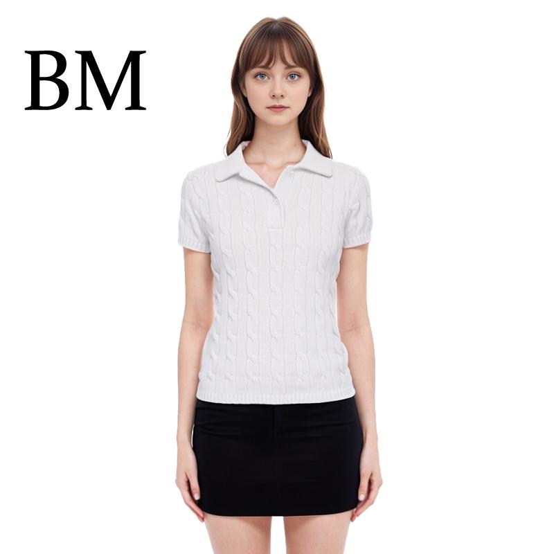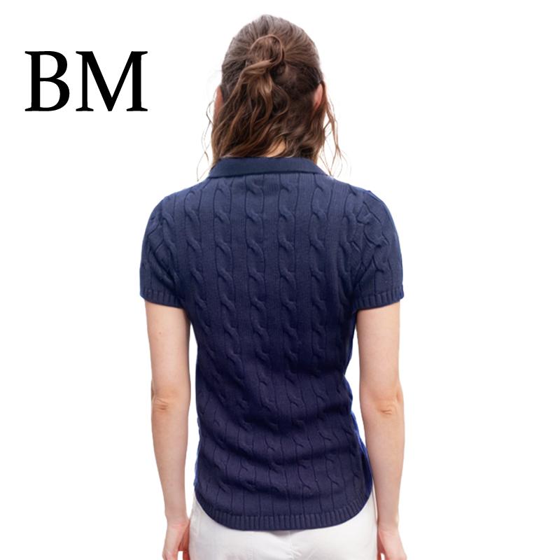 BM新款经典短袖绞花针织POLO衫女纯色简约老钱风修身百搭毛衣上衣