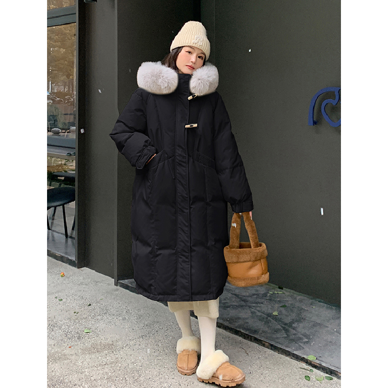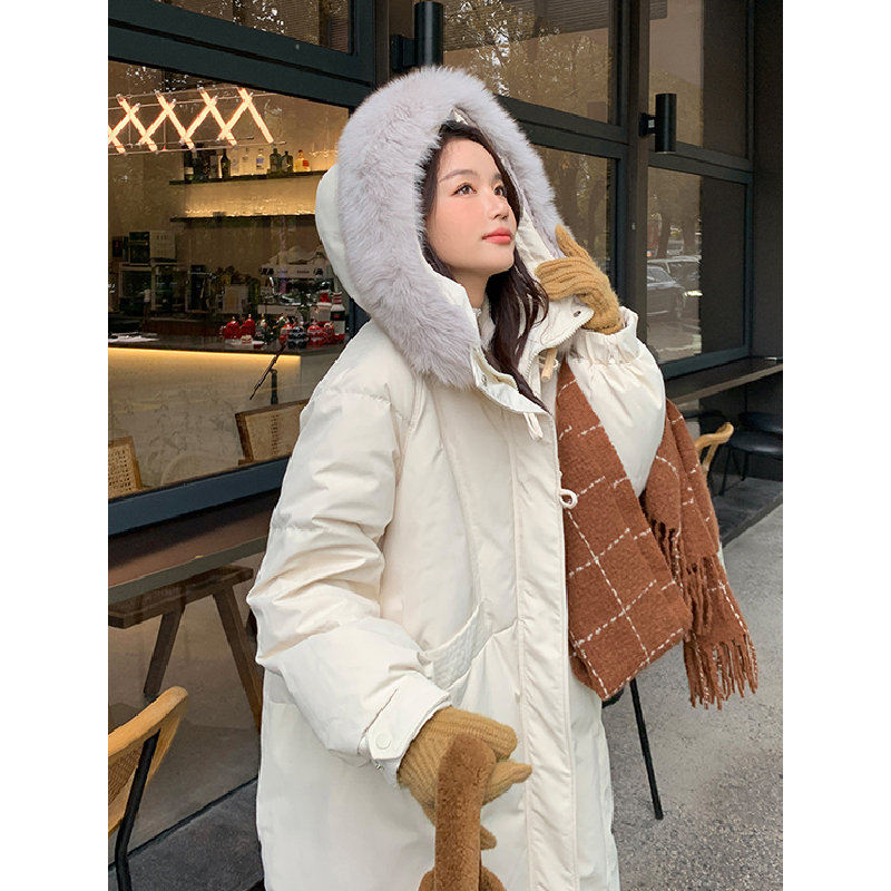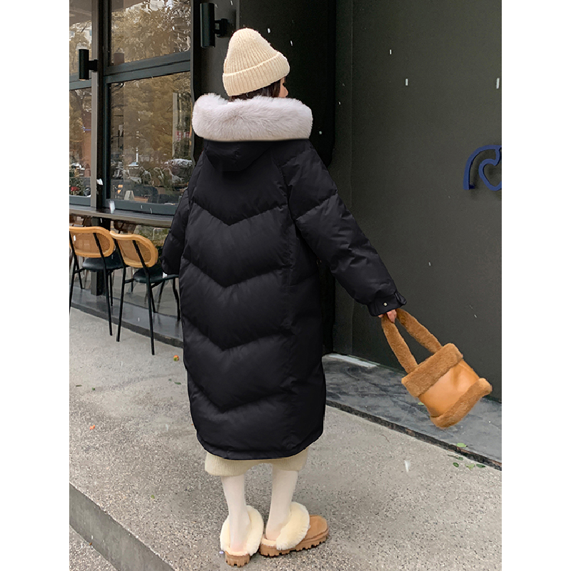 300斤大码胖mm杏色大毛领羽绒棉服女冬季韩版加厚保暖中长款外套