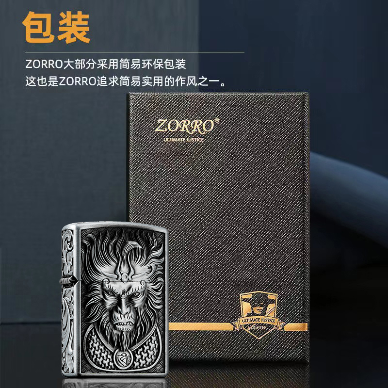 ZORRO佐罗黑神化悟空煤油打火机创意浮雕复古防风老式个性礼物男