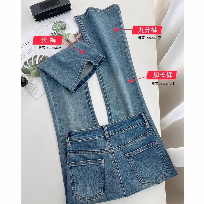 高腰微喇牛仔裤女2025春秋新款弹力修身显瘦小个子九分喇叭裤长裤