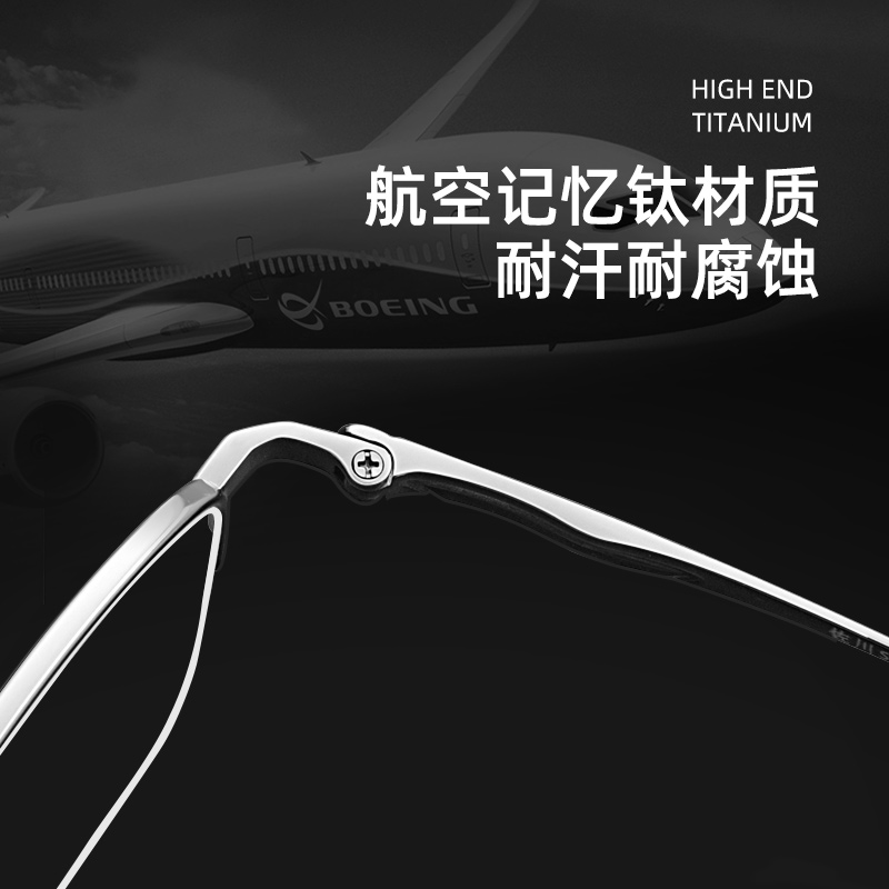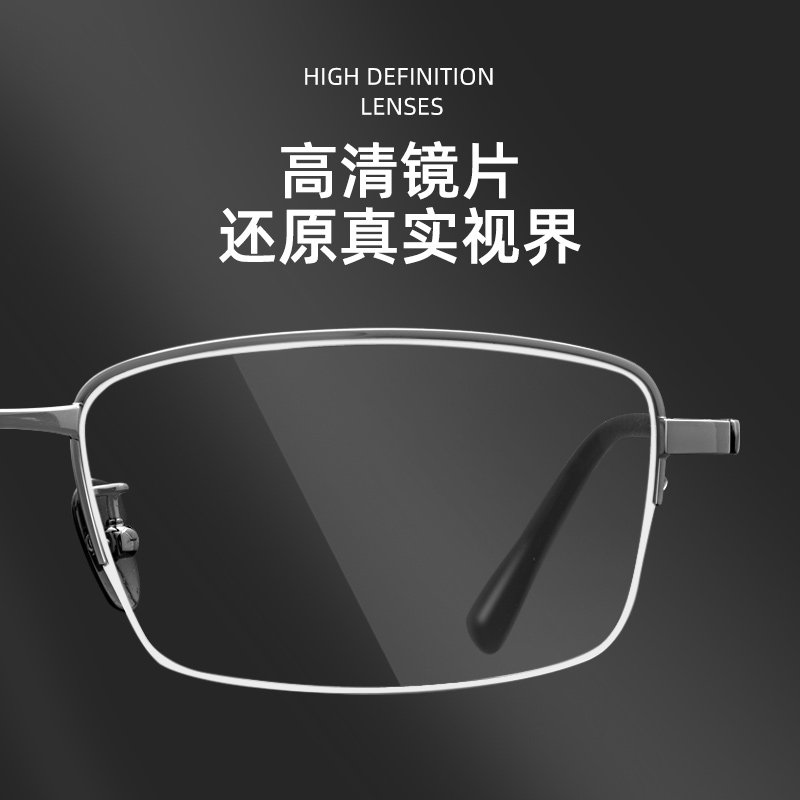 半框纯钛近视眼镜男超轻防蓝光防辐射抗疲劳变色可配度数商务近视