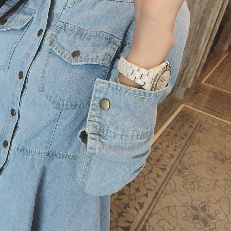 牛仔连衣裙秋冬长袖复古2019春伞裙翻领修身A字荷叶边短裙显瘦潮