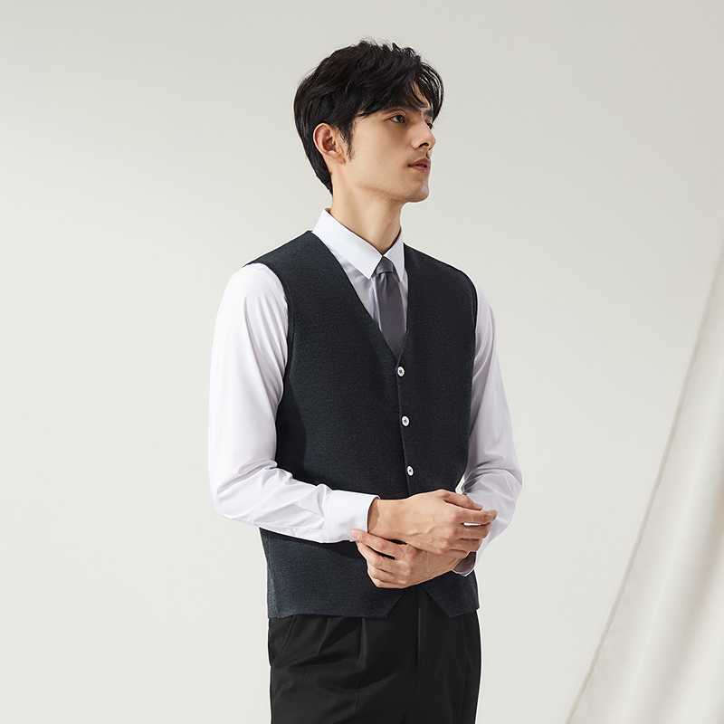 【高端系列】柒牌开衫羊毛衫男士2025秋冬新款无袖V领保暖针织衫