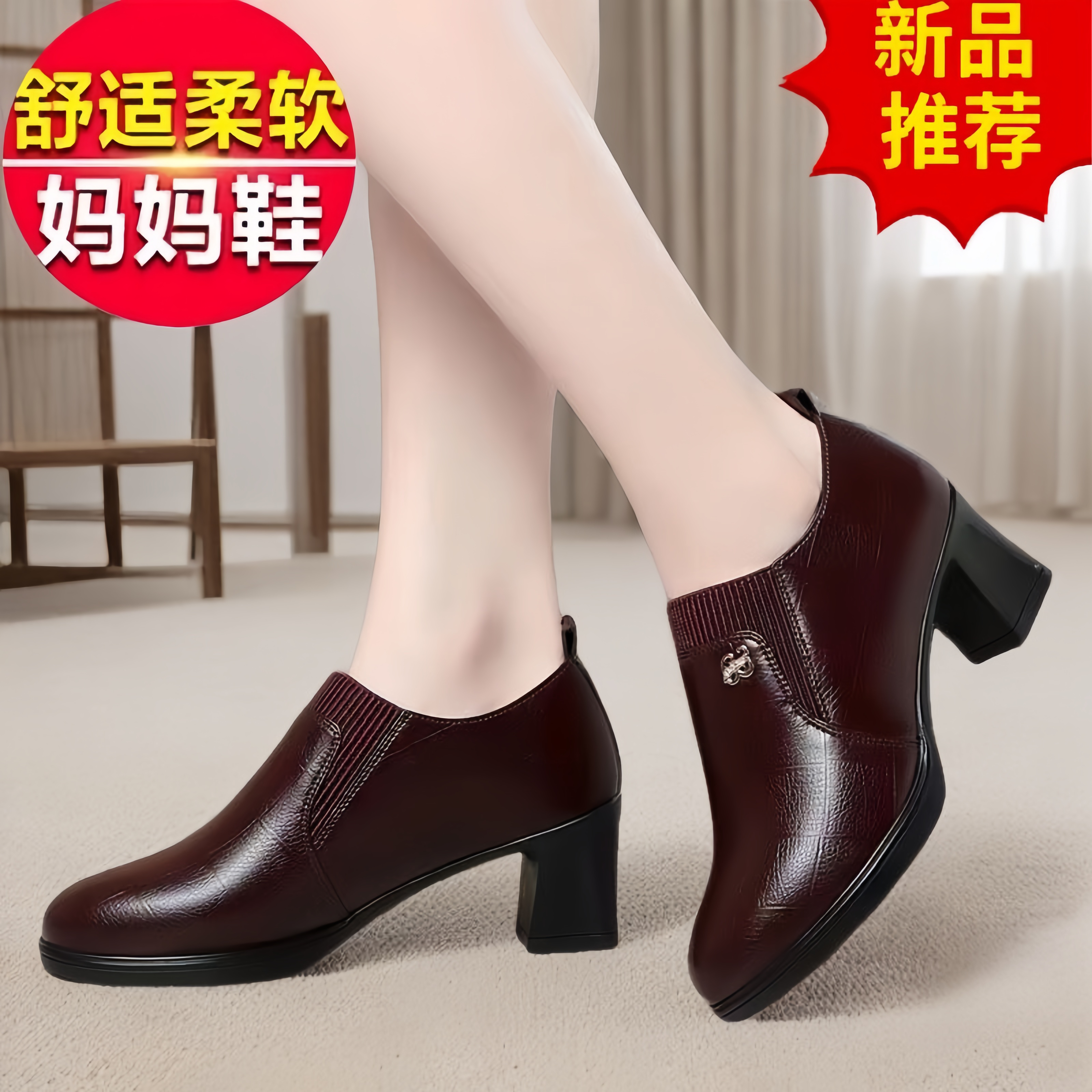 防滑妈妈鞋春秋款2025新款中年女士皮鞋深口单鞋女舒适中老年女鞋