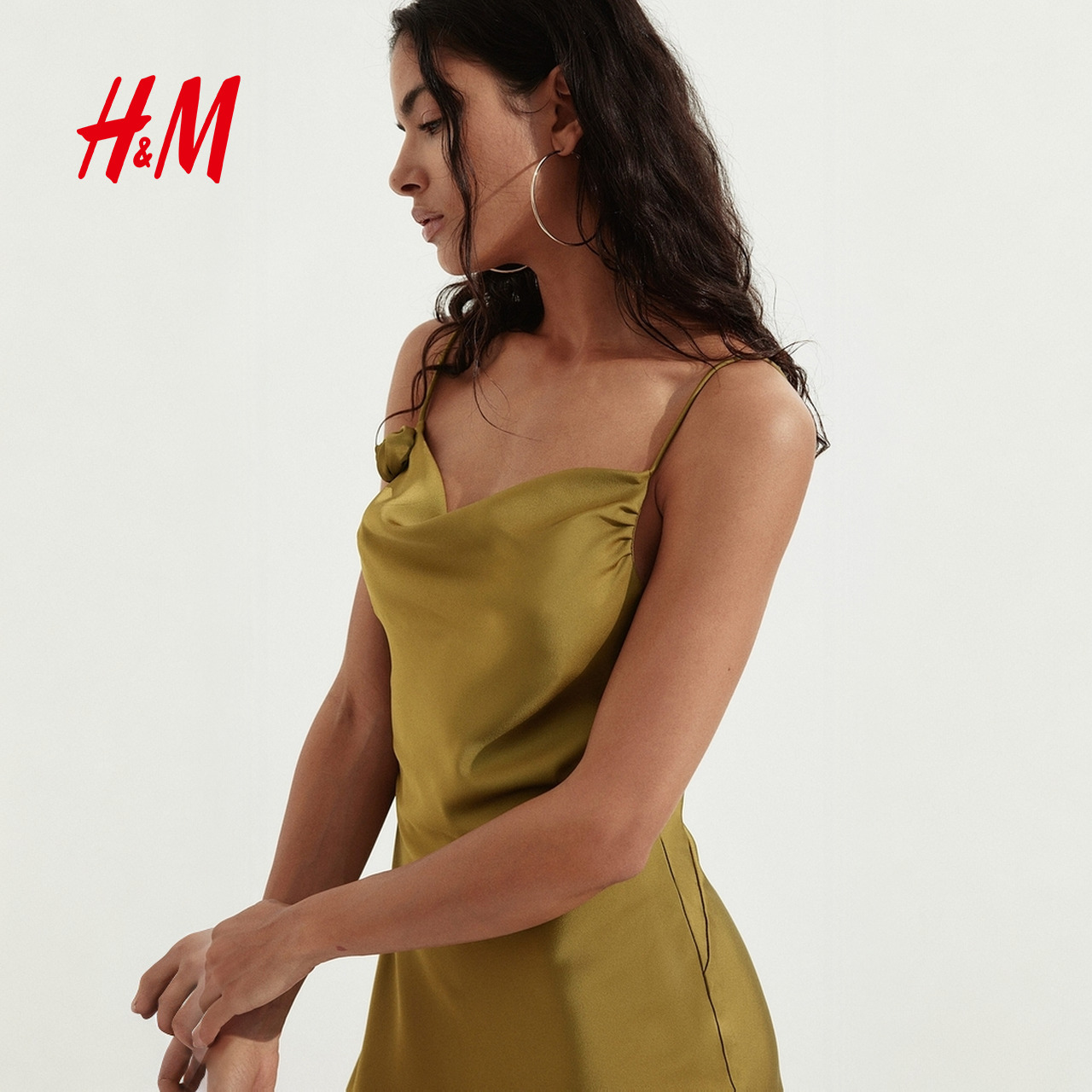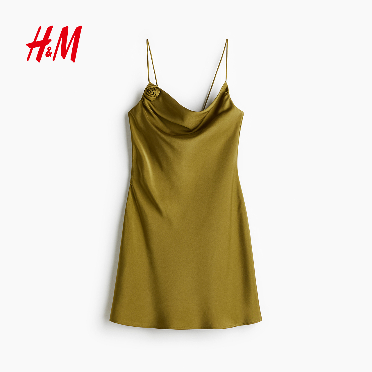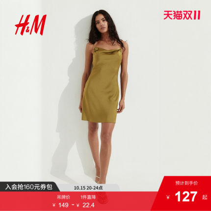 HM女装连衣裙2025夏季新款无袖系带装饰缎质背心吊带裙1290952