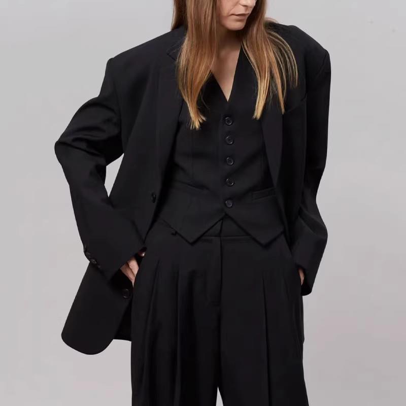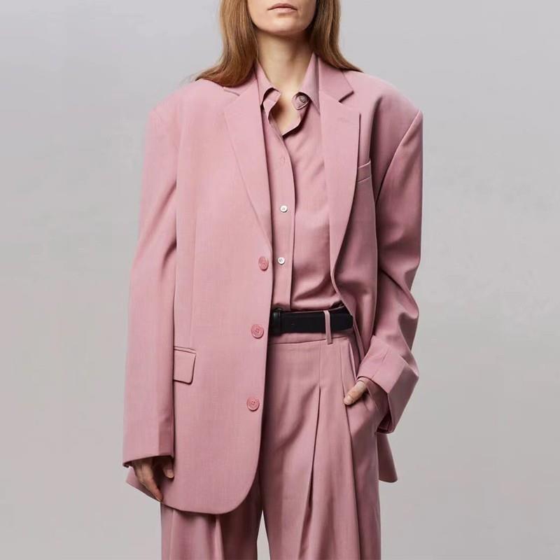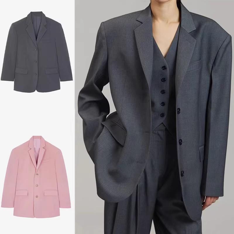 【现货】Rouje Life春秋垫肩西装单排扣羊毛混纺通勤外套廓形西服