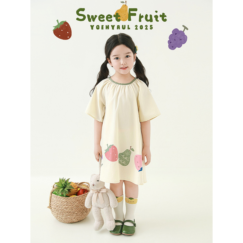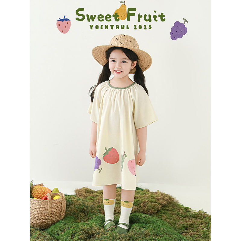 幼悠女童短袖法式慵懒连衣裙夏季元气可爱靓色包边时尚圆领裙子潮