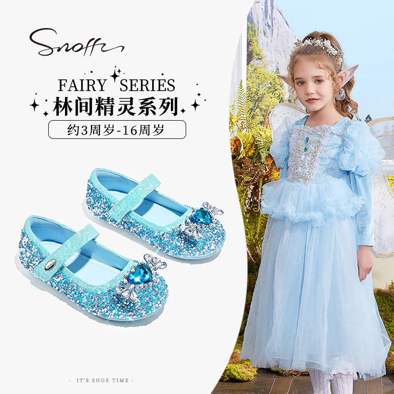 斯纳菲女童皮鞋爱莎蓝公主鞋