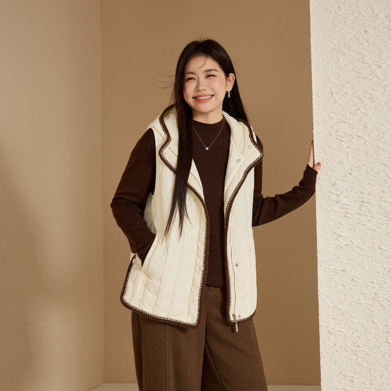 【保暖叠穿棉马甲】纤莉秀大码女装时尚连帽棉服胖mm2025冬装新款