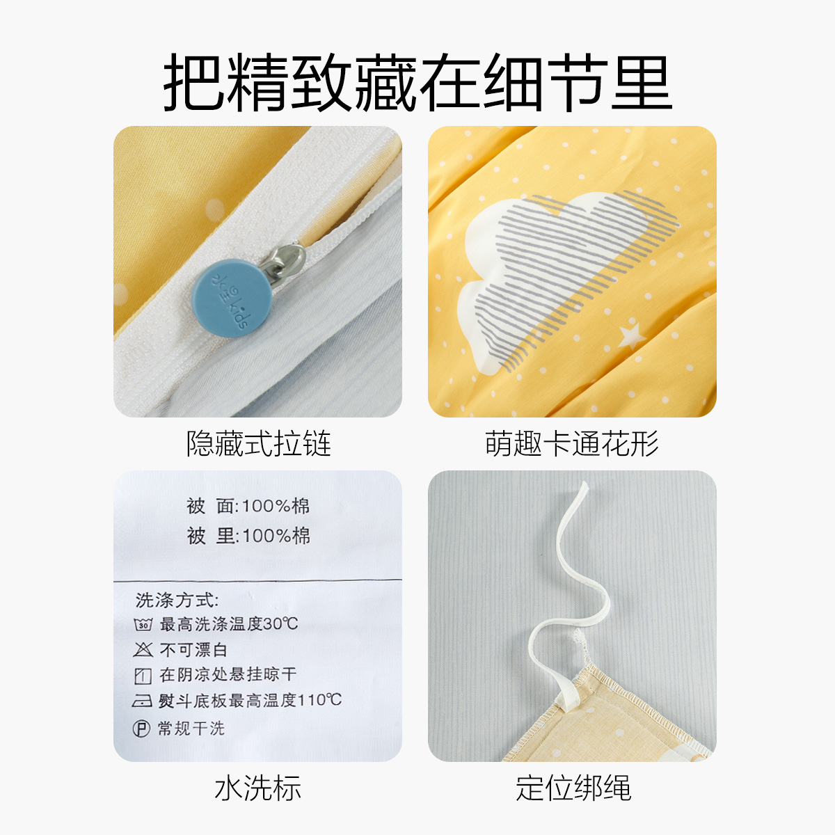 水星家纺全棉儿童卡通三件套