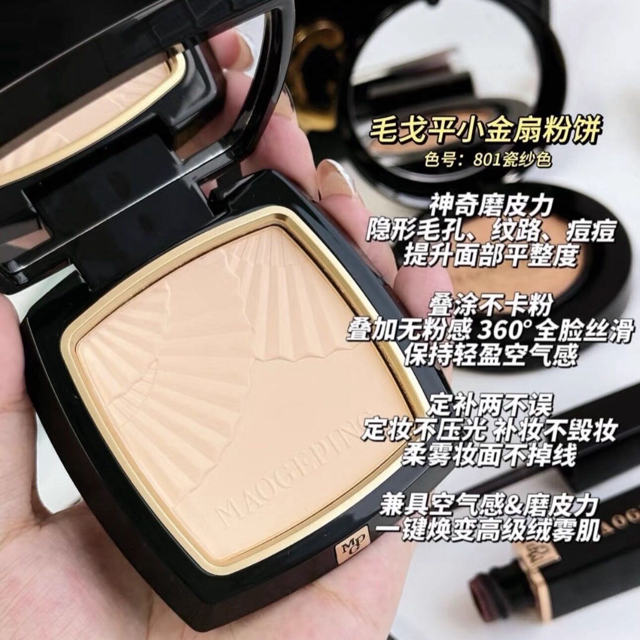 早八人用到铁皮!毛戈平小金扇粉饼小样哑光控油持妆定妆免费试用