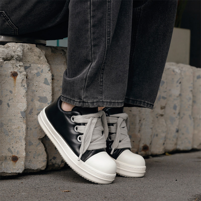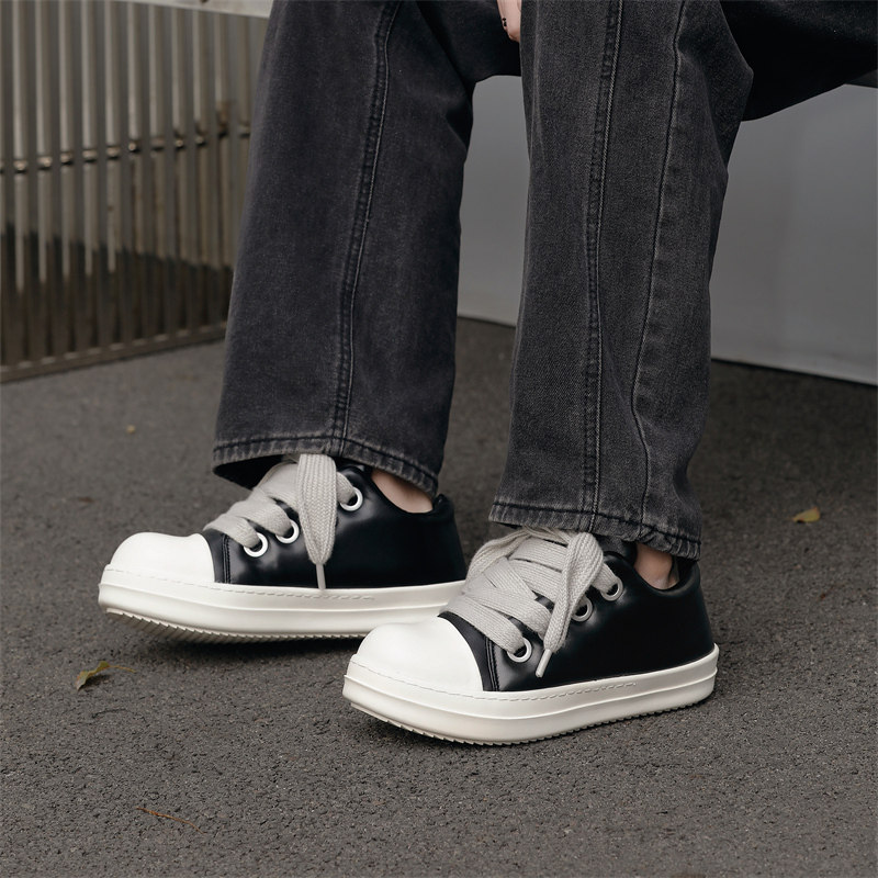 情侣同款板鞋港风厚底皮鞋潮男女时尚鞋子低帮面包鞋休闲高街百搭